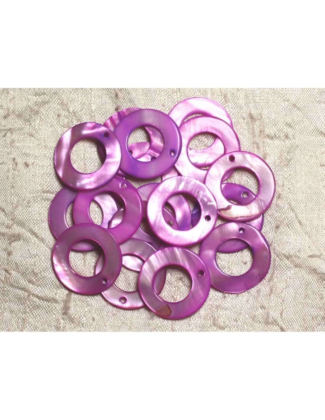 10pc - Colgantes con dijes de perlas Círculos de nácar 25 mm Púrpura Rosa 4558550014375