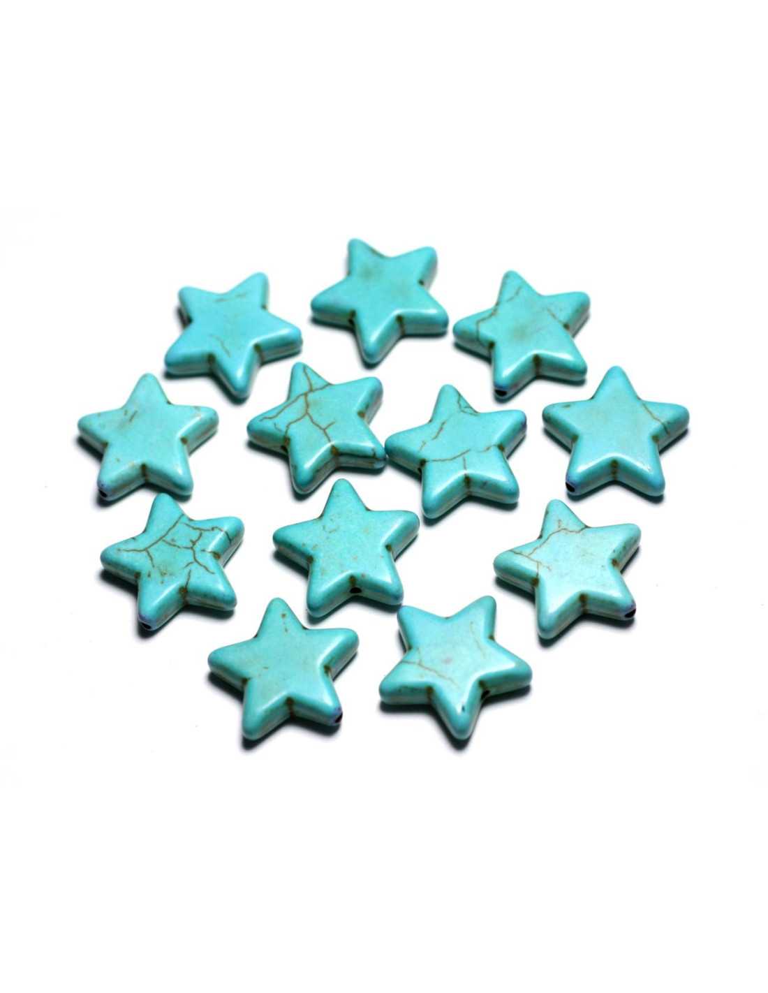 homemadeHilo 39cm 13pc aprox - Cuentas de Piedra Turquesa Sintética 35mm Estrellas Azul Turquesa