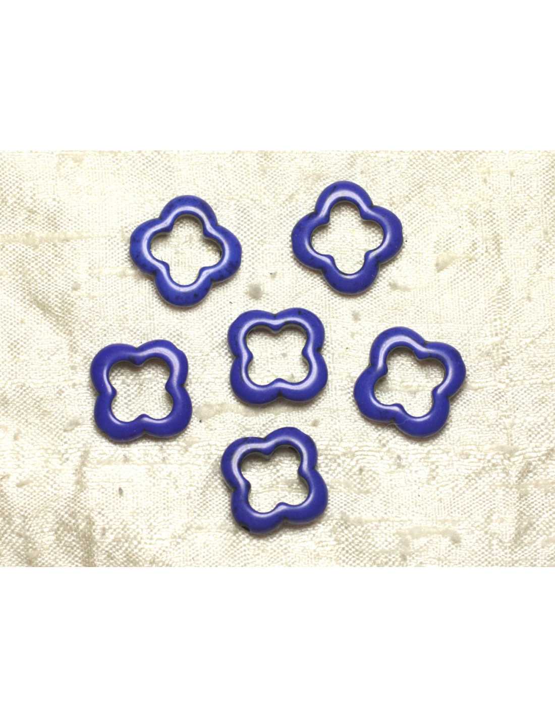 Hilo 39cm - Cuentas de piedra turquesa Síntesis reconstituida Trébol de flores 4 hojas 20 mm Piedra sintética Color Azul medianoche Forma Flor, Trébol 4 hojas, perforadas de arriba a abajo Dimensiones Largo 20 mm x Ancho 17 mm x Espesor 4 mm aprox Dimensión de perforación 1 mm aprox Vendido por hilo de 39cm Aproximadamente 18 cuentas por hebra