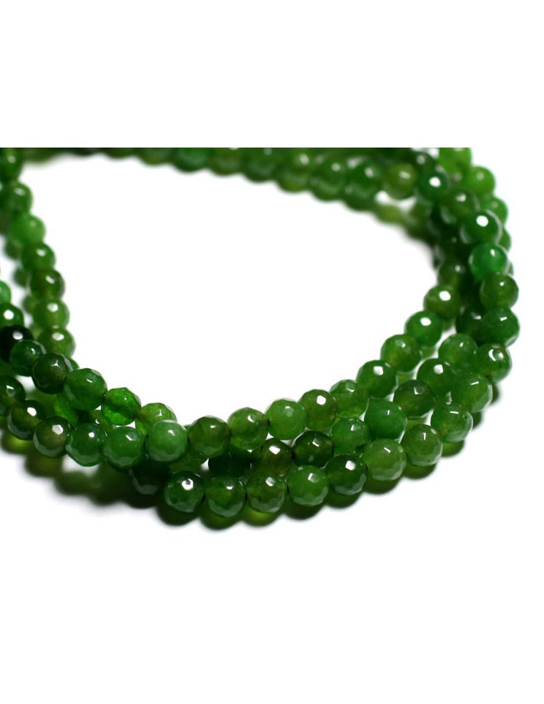 Hilo 39cm - Cuentas de piedra de jade verde Bolas facetadas 6 mm Piedra semipreciosa natural teñida Color Verde oliva, transparente Bolas facetadas Forma Dimensiones 6 mm aproximadamente Tamaño de perforación aproximadamente 1 mm Se vende por hilo de 39 cm Aproximadamente 61 cuentas por hilo