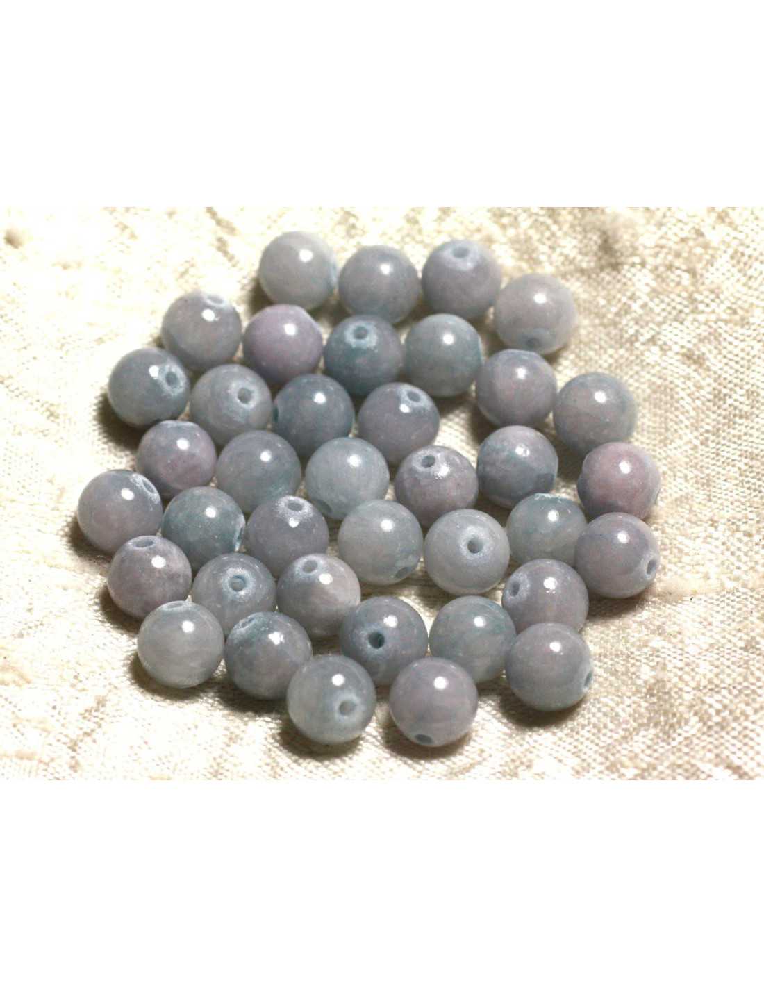 Hilo 39cm aprox 48pc - Cuentas de Piedra - Bolas de Jade 8mm Azul Claro Rosa Pastel