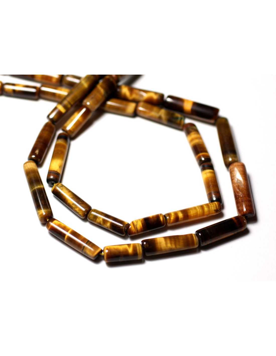 Cuentas de piedra de ojo de tigre Piedra semipreciosa natural Color negro, marrón, bronce, dorado, con reflejos Forma Tubos Dimensiones Longitud 10-16 mm x Grosor 4 mm aproximadamente Dimensión de perforación aproximadamente 0,3 mm Vendido por hebra de 38 cm Aproximadamente 27 cuentas por hebra