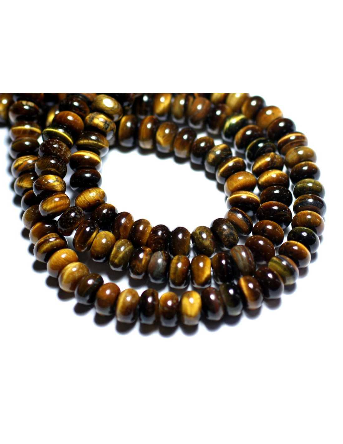 Hilo 39cm - Cuentas de piedra de ojo de tigre Piedra semipreciosa natural Color marrón, negro, dorado, bronce, con reflejos Forma Rondelles Dimensiones Diámetro 8 mm x Espesor 5 mm aproximadamente Dimensión de perforación 1 mm aproximadamente Se vende por alambre de 39 cm Aproximadamente 80 cuentas por alambre