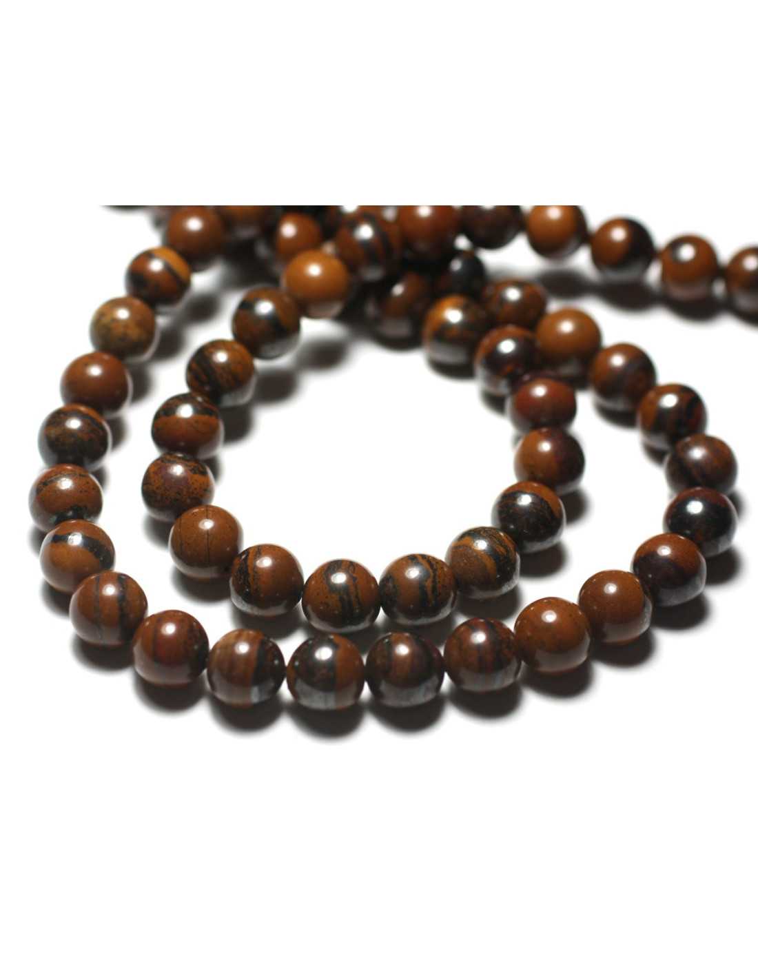 Hilo 39cm 49pc aprox - Cuentas de Piedra - Ojo de Hierro Marrón Bolas 8mm