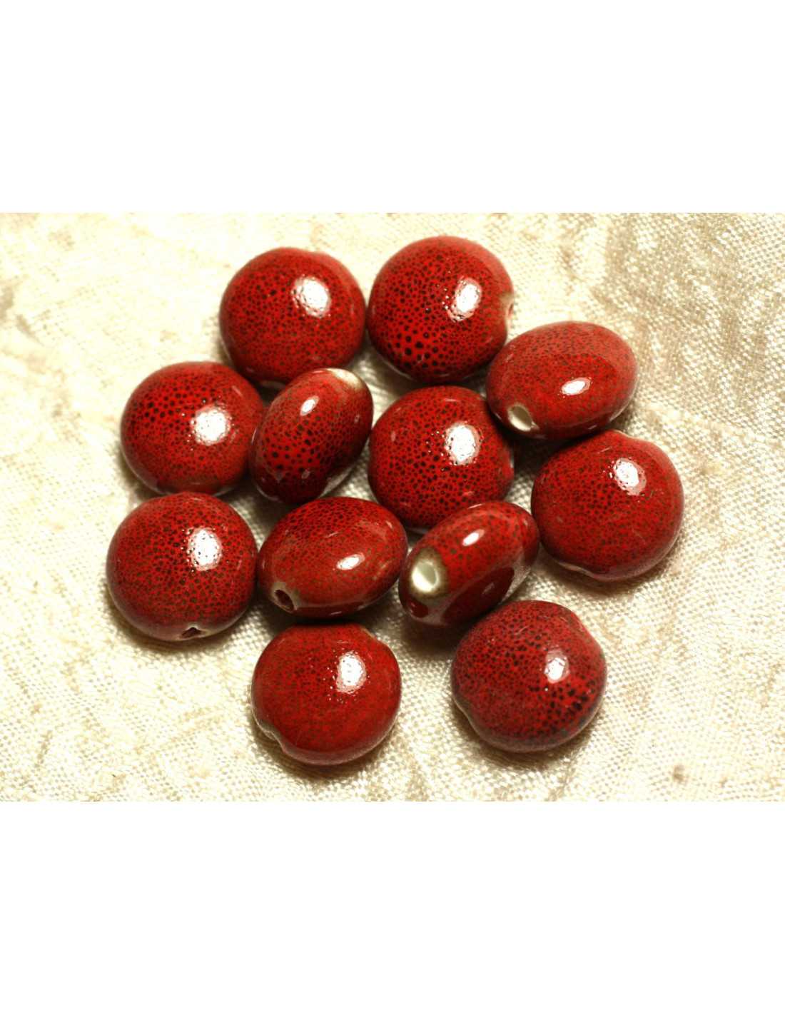 100pc - Perles Céramique Porcelaine Palets 14mm Rouge