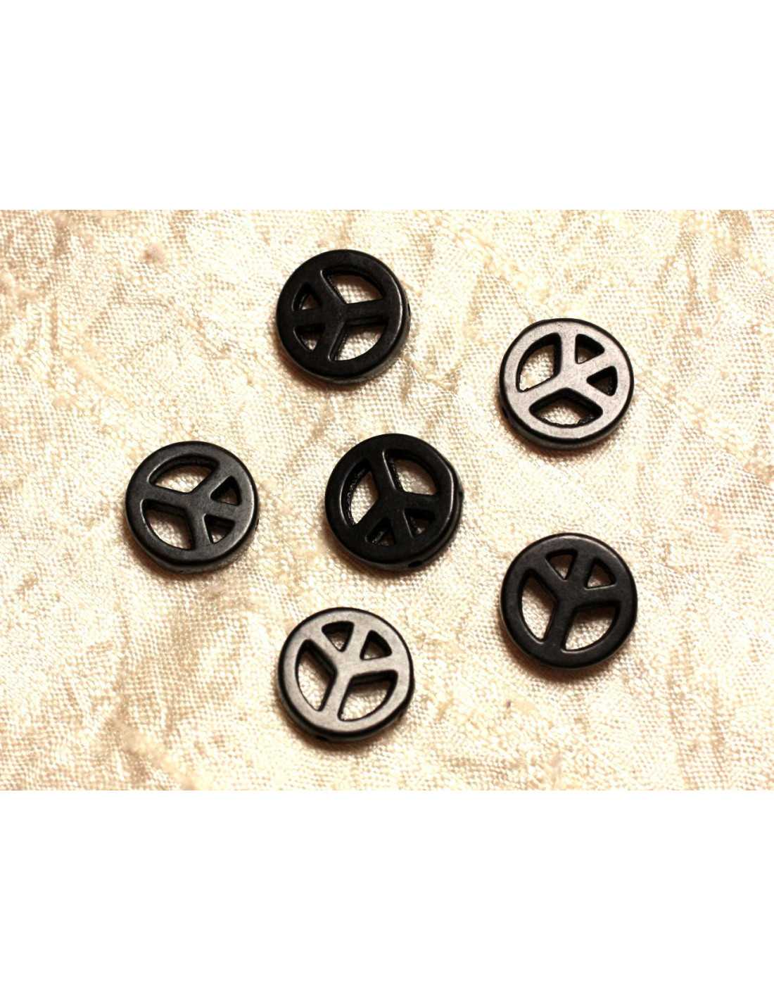 Hilo 39cm - Cuentas de piedra turquesa Reconstituidas Paz y Amor 15 mm Piedra sintética Color Negro Forma Paz y Amor perforado de arriba a abajo Dimensiones Diámetro 15 mm x Espesor 3-4 mm aprox.Tamaño de perforación aprox.1 mm Vendido por hilo de 39 cm Aproximadamente 25 cuentas por hebra