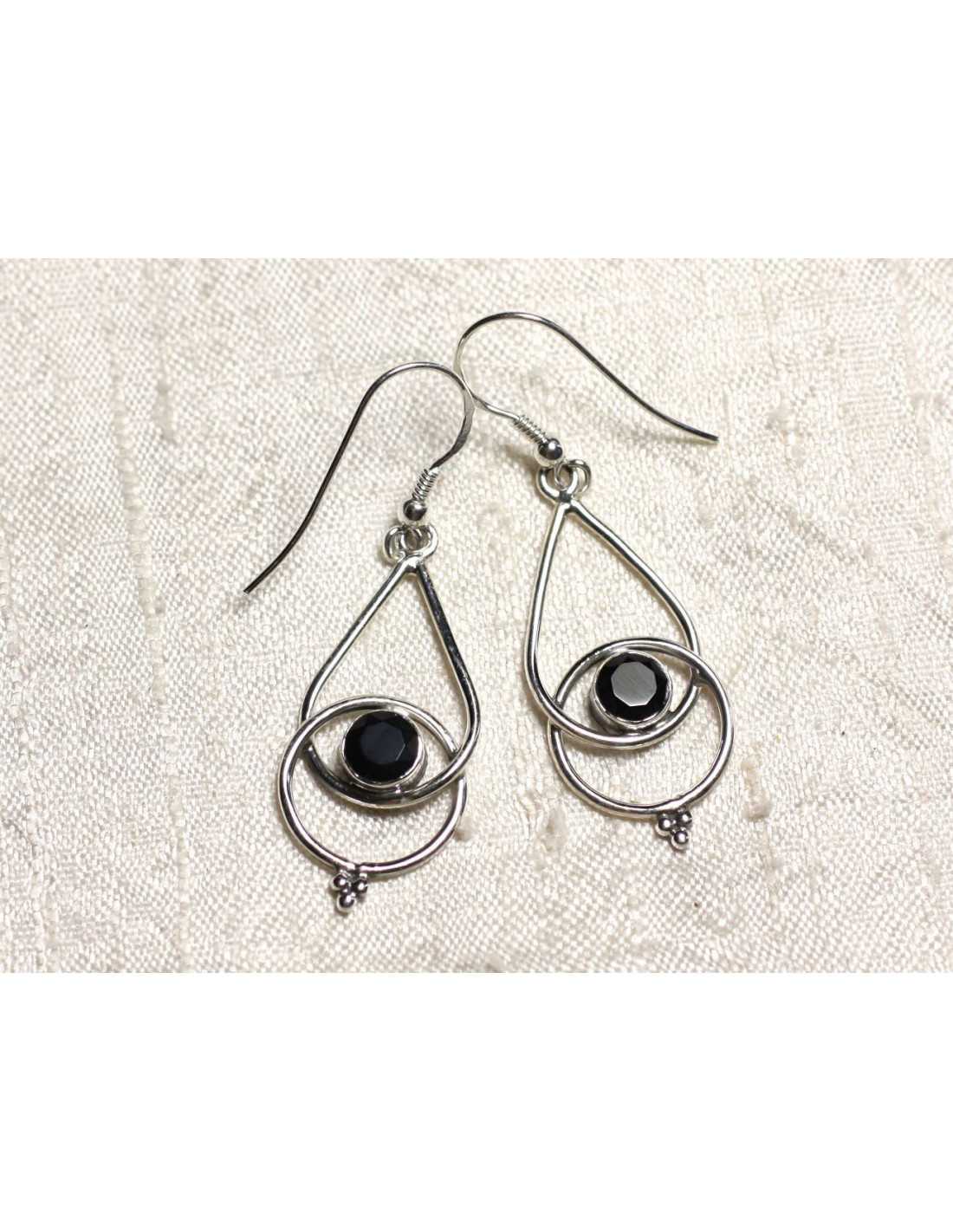BO205 - Pendientes Plata 925 y Gotas de Piedra Ónix Negro 36mm