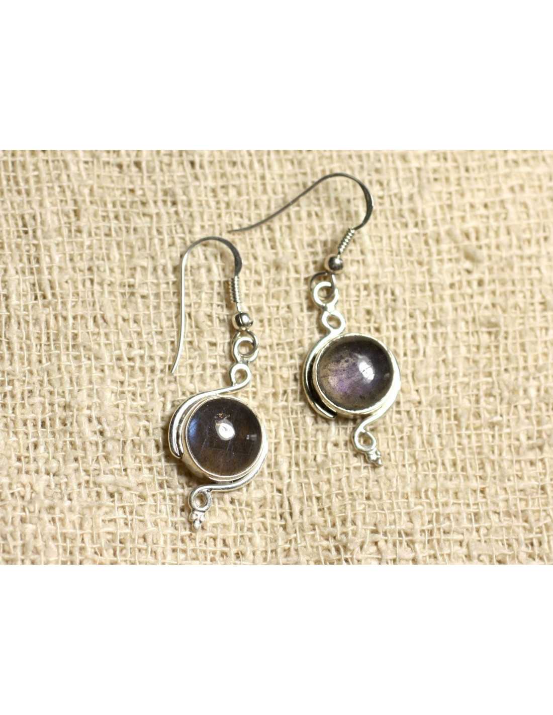 BO213 - Pendientes de Plata de Ley 925 y Piedra - Labradorita Redonda 10mm