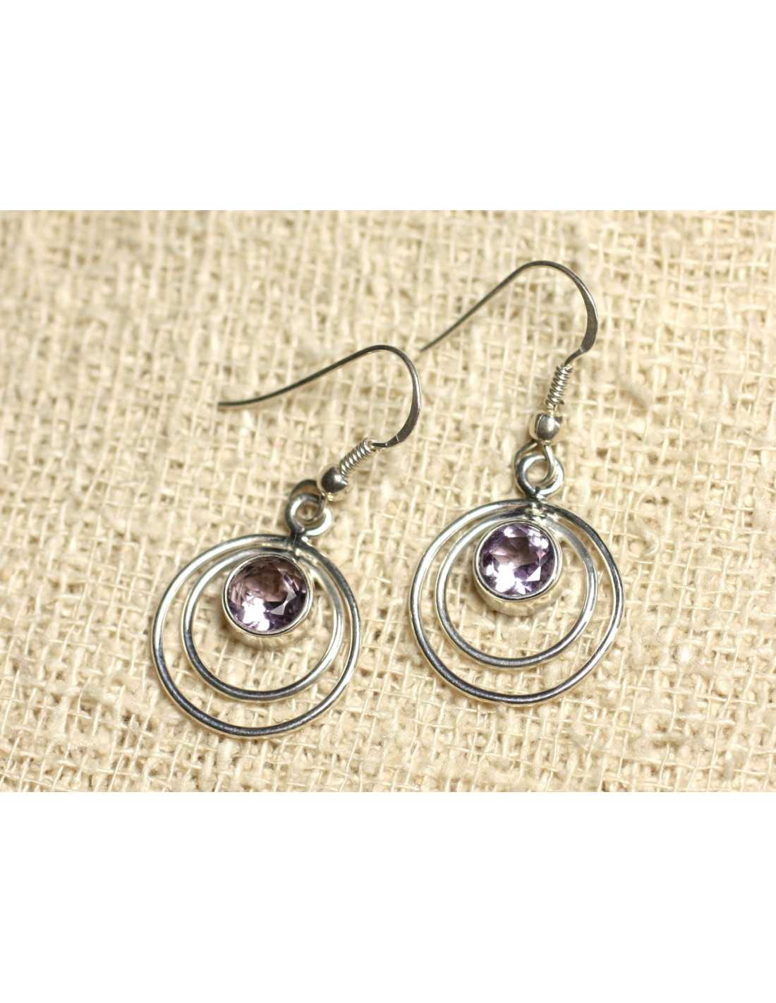Pendientes Plata 925 y piedra semipreciosa Amatista facetada Piedra semipreciosa natural Transparente color malva violeta Forma Redondo facetado Dimensiones 6 mm aproximadamente Dimensiones Pendientes (excluyendo ganchos): Largo 20 mm x Ancho 16 mm x Espesor 4 mm aproximadamente Piedras engastadas en Plata 925 / 1000 Ganchos en Plata 925/1000