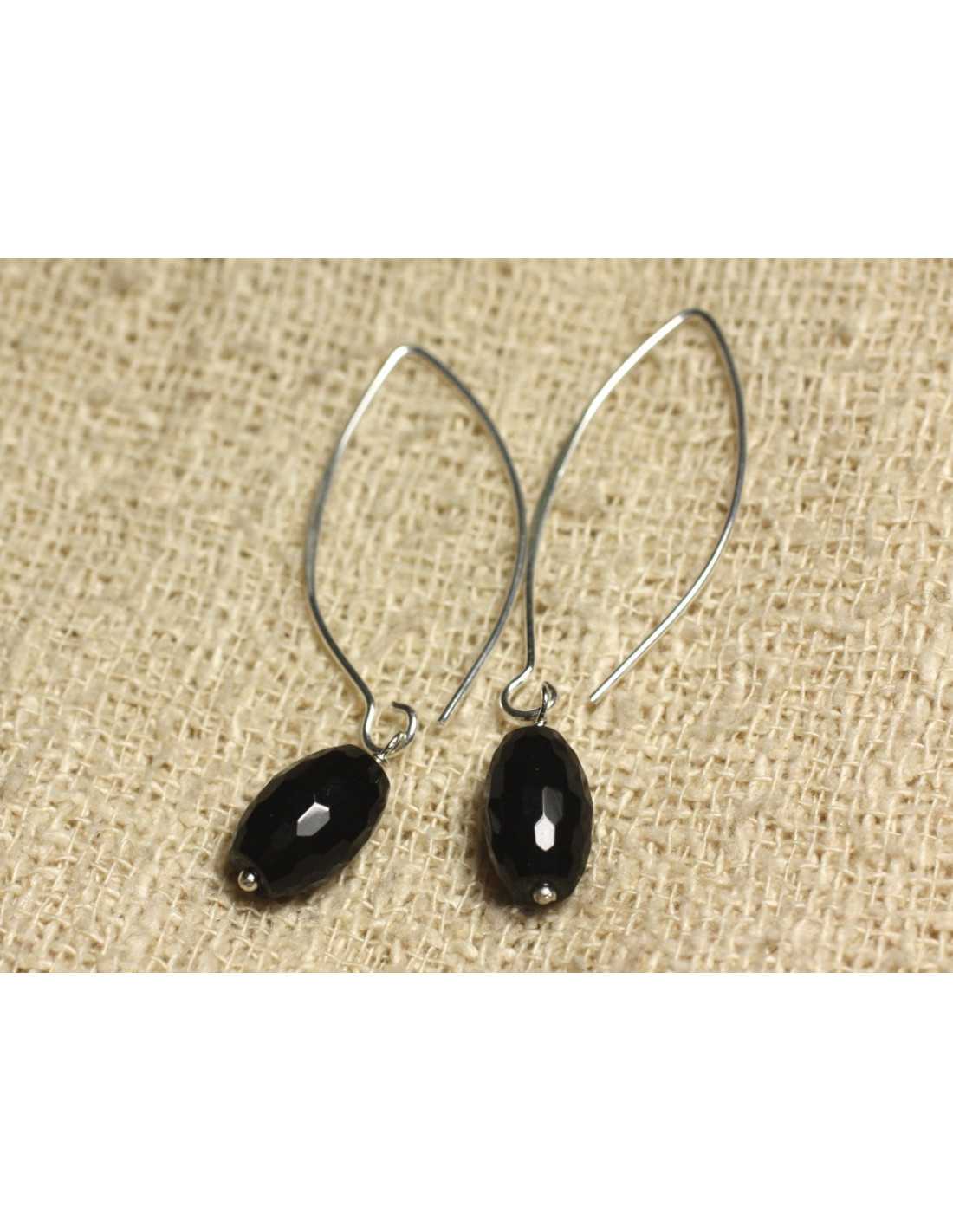 Pendientes Plata 925 Ganchos 40mm - Ónix Negro Aceitunas facetadas 12x8mm