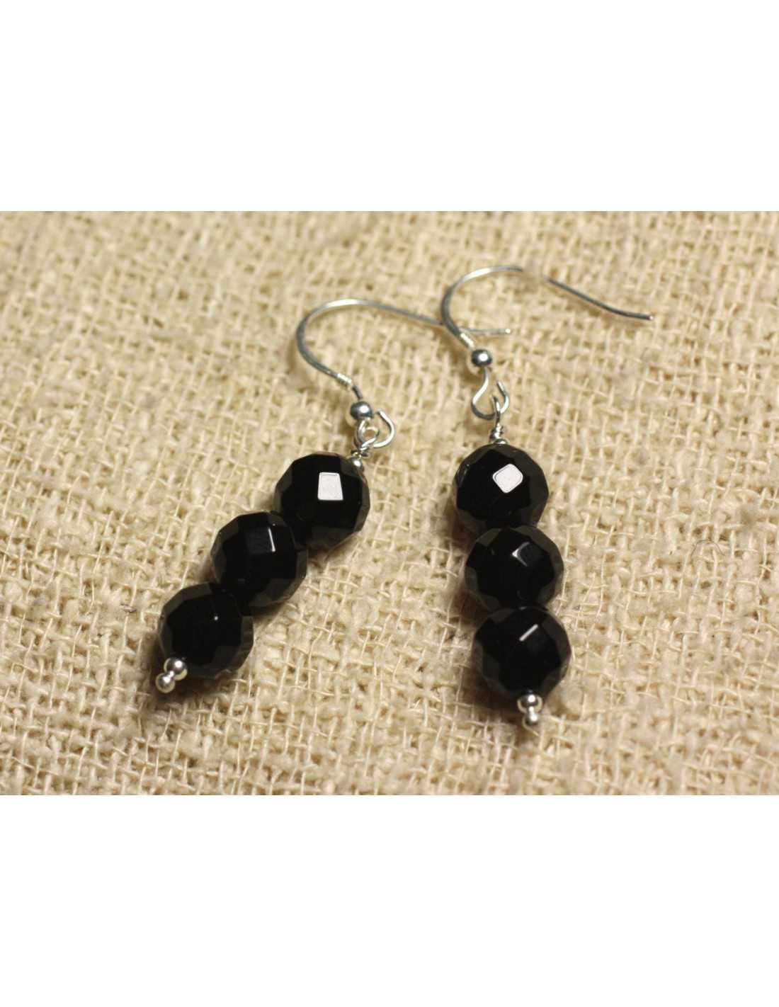 Pendientes Plata 925 - Cuentas redondas facetadas ónix negro 8mm