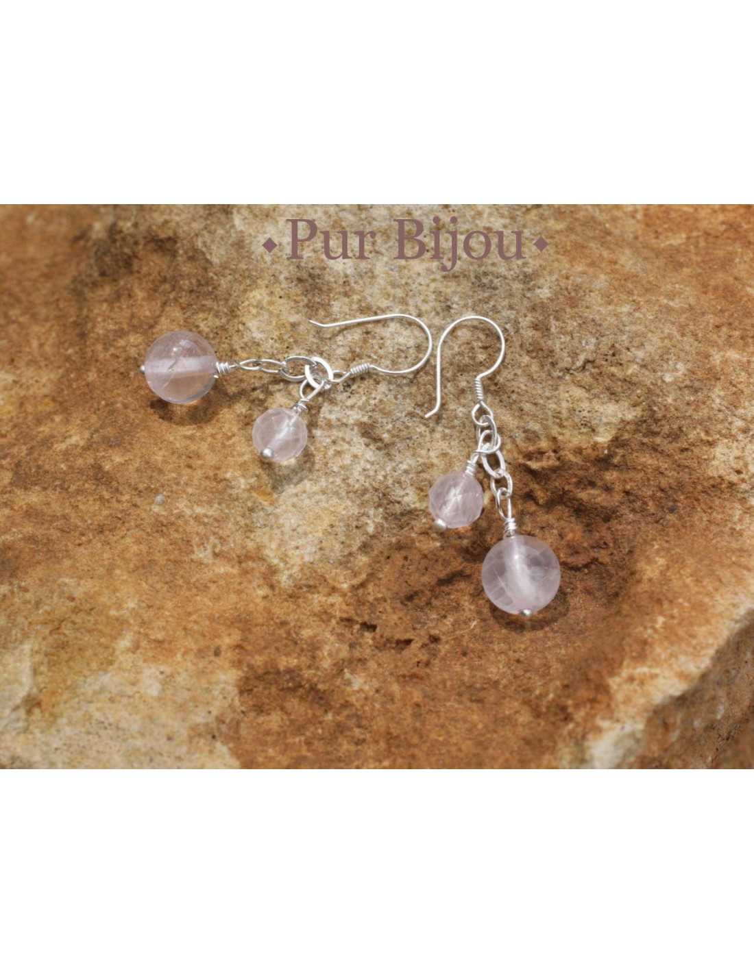 Pendientes de Plata 925 - Cuarzo Rosa Preciosos pendientes compuestos de perlas de Cuarzo Rosa montadas en una cadena de plata Composición: Perlas de Cuarzo Rosa, bolas facetadas de 8 mm y 6 mm Ganchos de plata 925/1000 Cadena de plata 925/1000 Longitud con ganchos para la oreja: aproximadamente 35 mm. Varias cuentas de piedras semipreciosas disponibles y haciendo sus joyas a pedido, ¡no dude en contactarme!