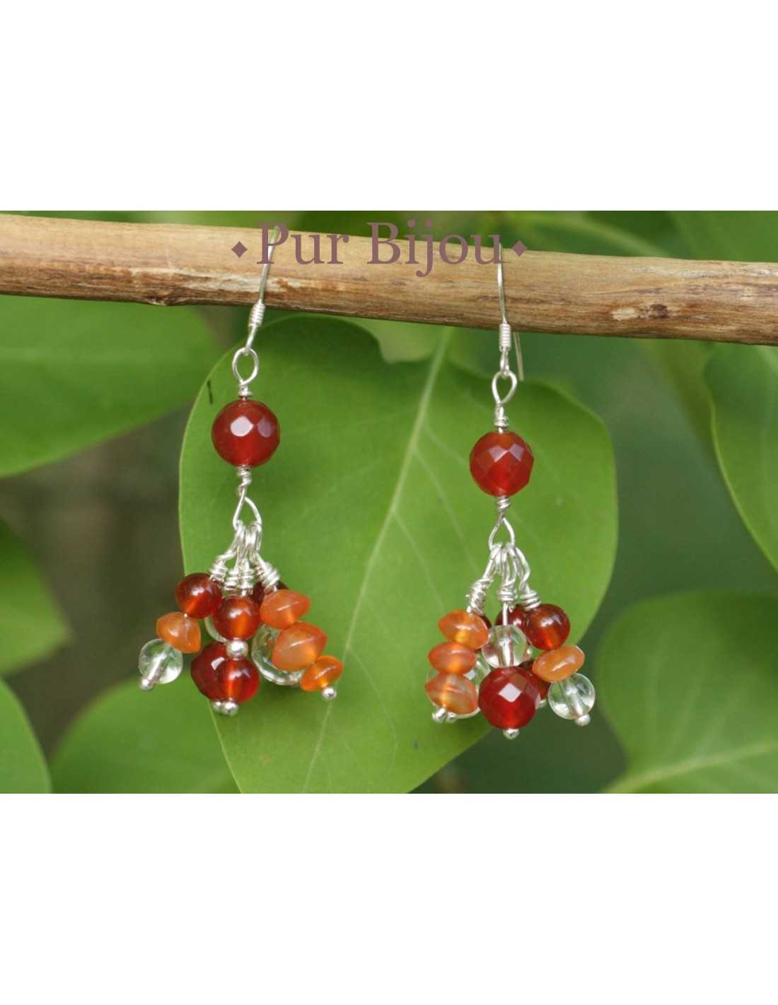 Pendientes de Plata 925 - Piedras Semipreciosas - Cornalina y Cristal