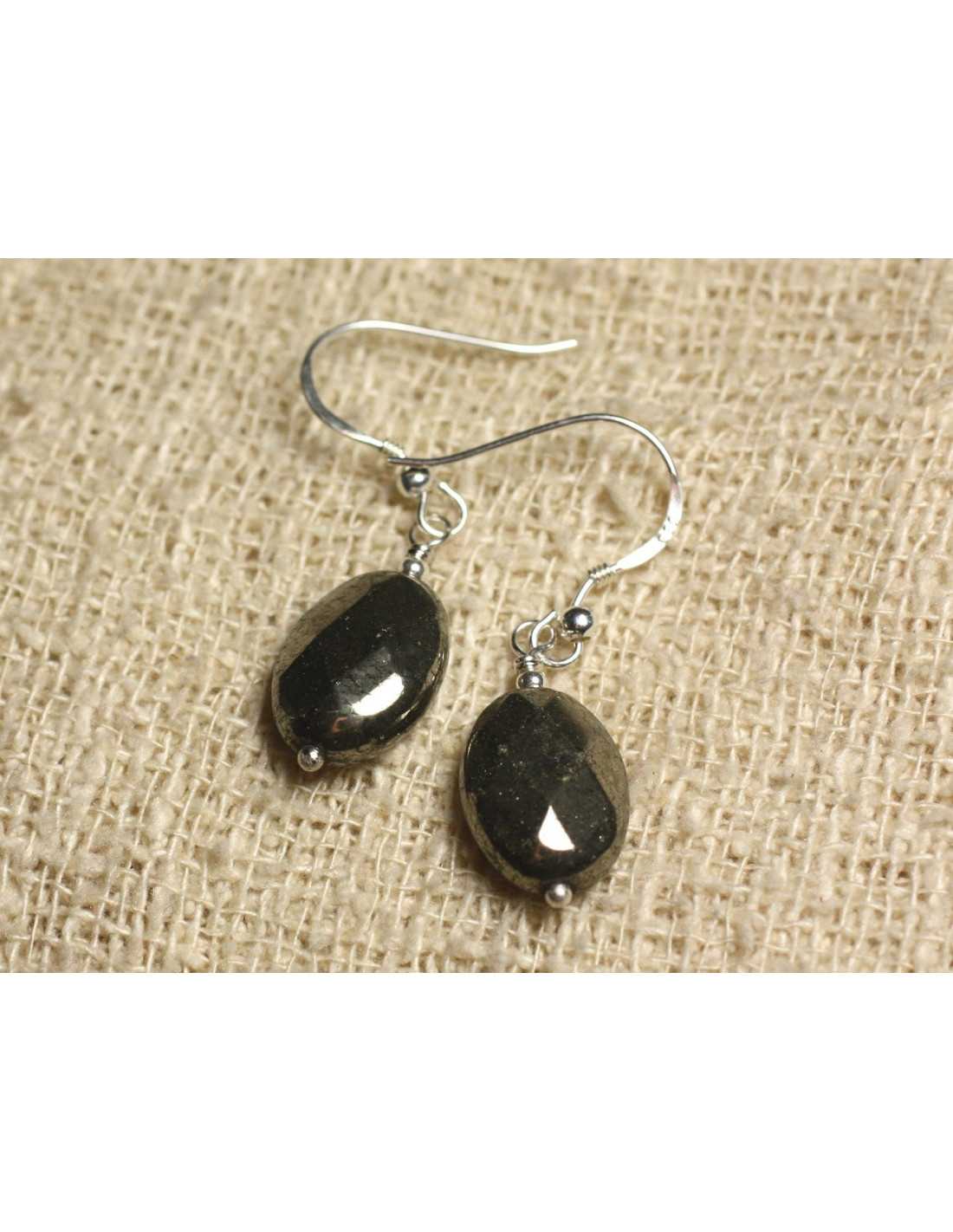 Pendientes Plata 925 - Pirita dorada Facetada ovalada 14x10mm
