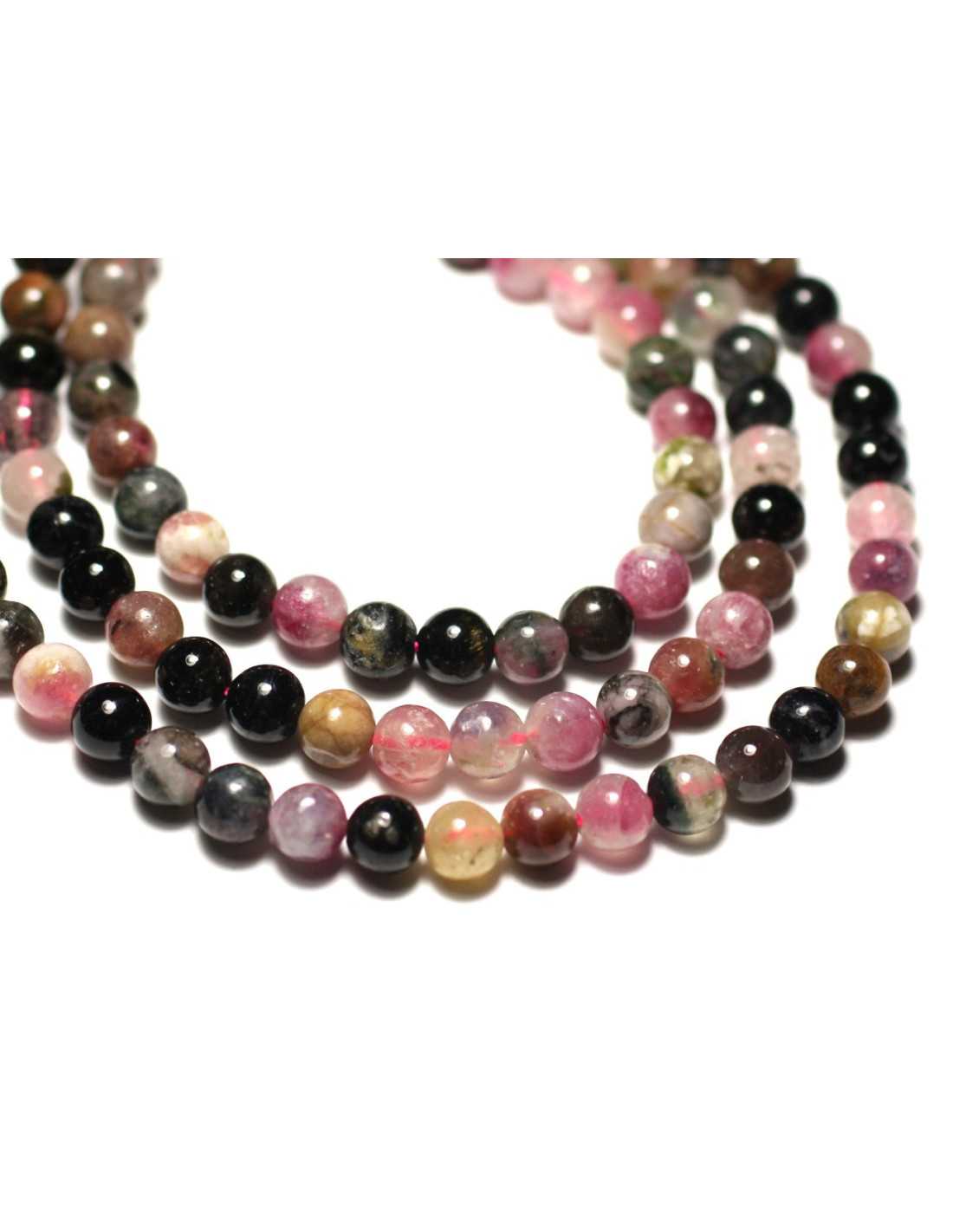 Hilo 39cm - Cuentas de piedra de turmalina multicolor Piedra semipreciosa natural Color negro, blanco, rosa, naranja, verde Bola, forma redonda Dimensiones aproximadamente 6 mm Dimensión de perforación aproximadamente 1 mm Vendido por alambre de 39 cm Aproximadamente 67 cuentas por alambre