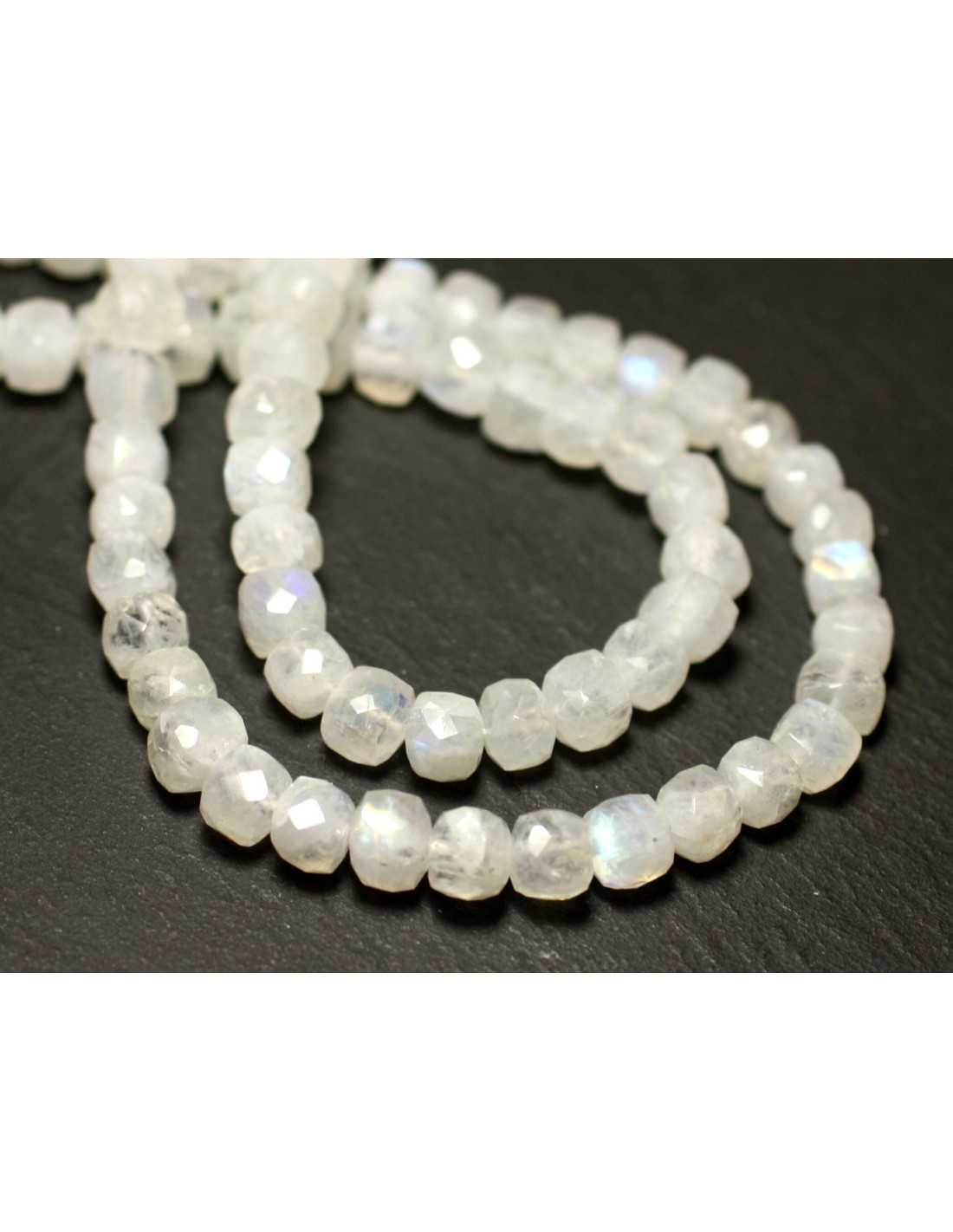 1pc - Cuentas de piedra - Cubo facetado de piedra lunar arcoíris 5-7 mm