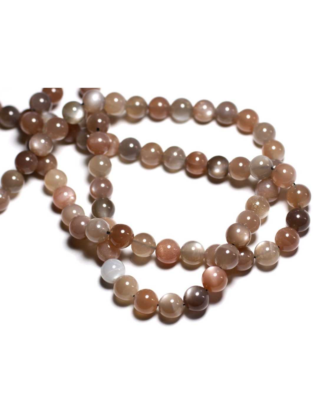 Fil 39cm - Perles de Pierre Pierre de Lune Grise et Rose Pierre semi précieuse naturelle Couleur gris, rose, avec des reflets irisés pailletés Forme Boules Dimensions 6mm environ Dimension perçage 1mm environ Vendu par fil de 39cm Environ 61 perles par fil