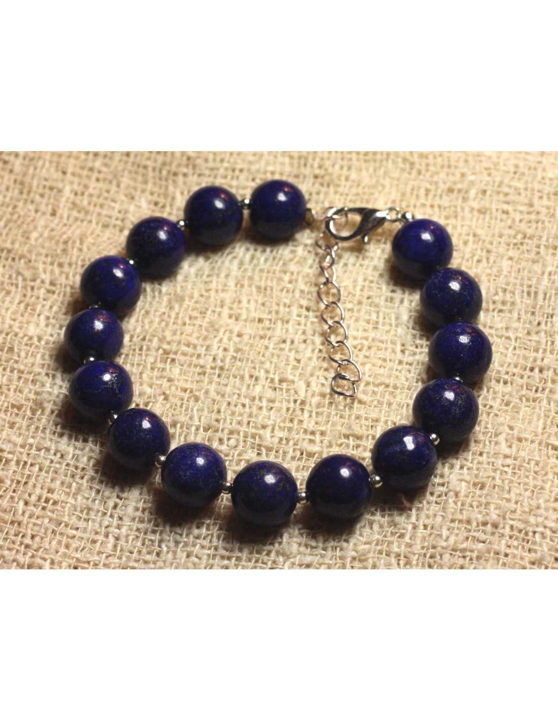 Pulsera Plata 925 y lapislázuli Piedra semipreciosa Piedra semipreciosa natural Azul oscuro, color oro Cuentas redondas aprox.10 mm Cuentas espaciadoras de plata 925, cierre de langosta redondo de 2 mm y cadena de plata 925 Longitud con cierre: 17 cm + 4 cm de cadena de plata