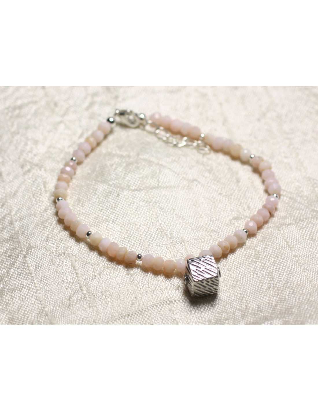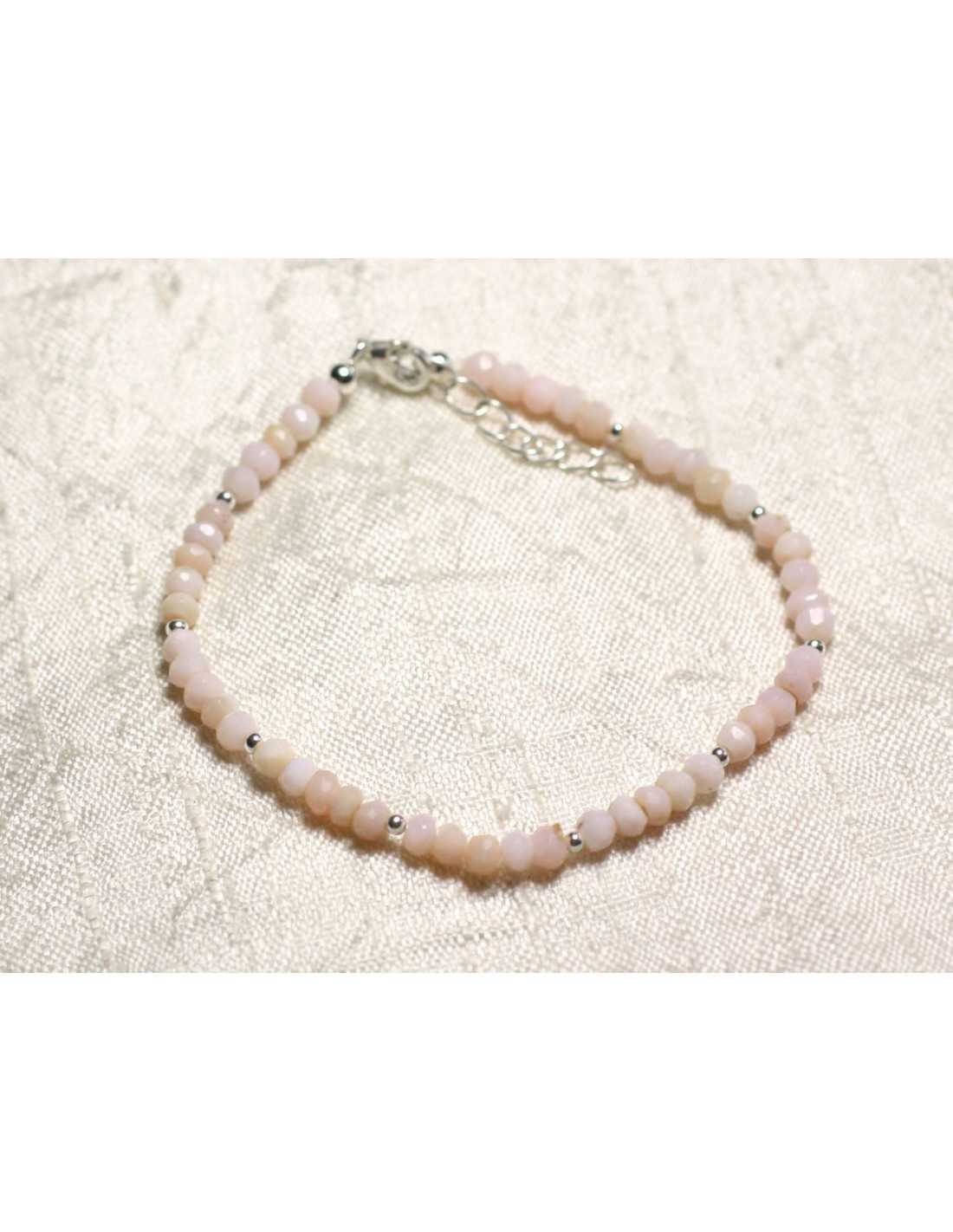 Pulsera Plata 925 y Piedra - Ópalo Rosa arandelas facetadas 3mm