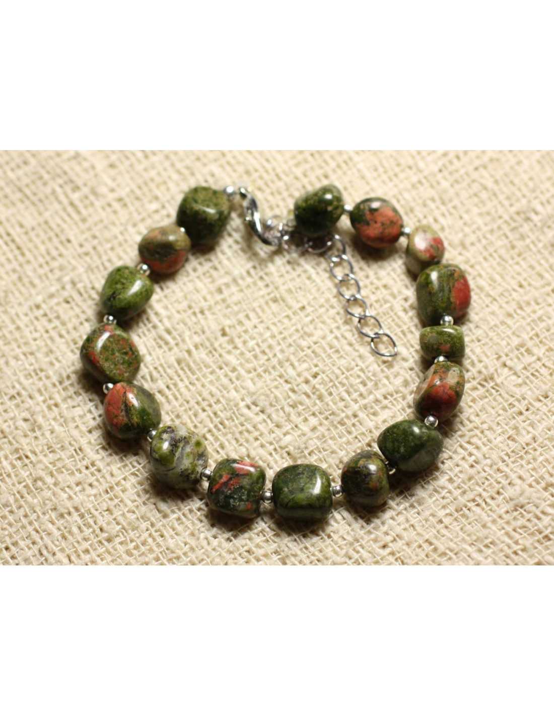 Pulsera Plata 925 y piedra semipreciosa - Unakite Nuggets 8mm