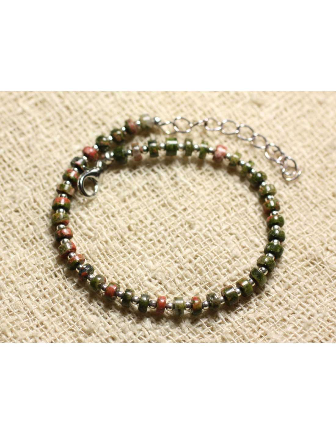 Pulsera Plata 925 y piedra semipreciosa - Unakite Rondelles 4x2mm