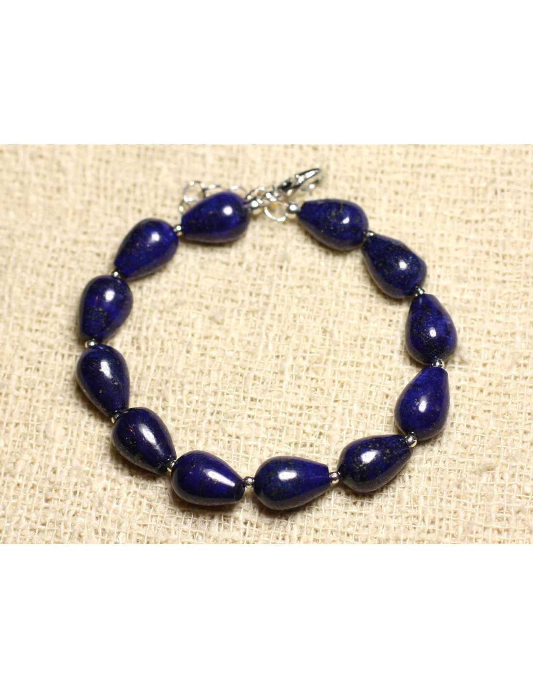 Pulsera Plata 925 y Piedra - Gotas de Lapislázuli 12mm