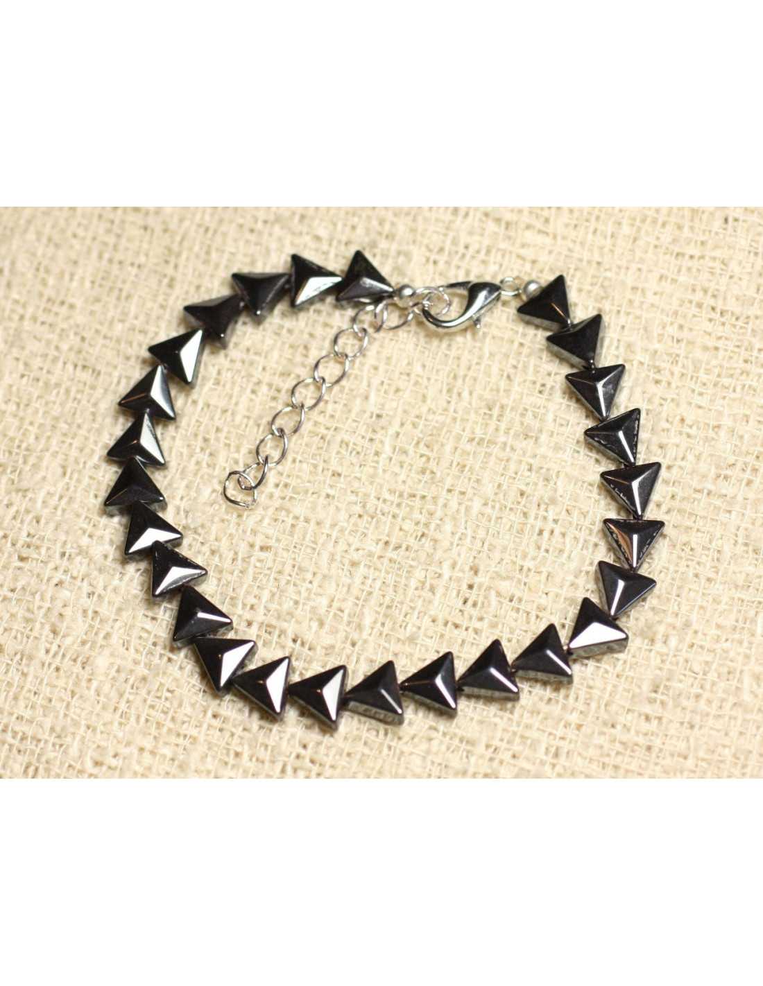 Pulsera Plata 925 y Piedra - Triángulos Hematites 6mm