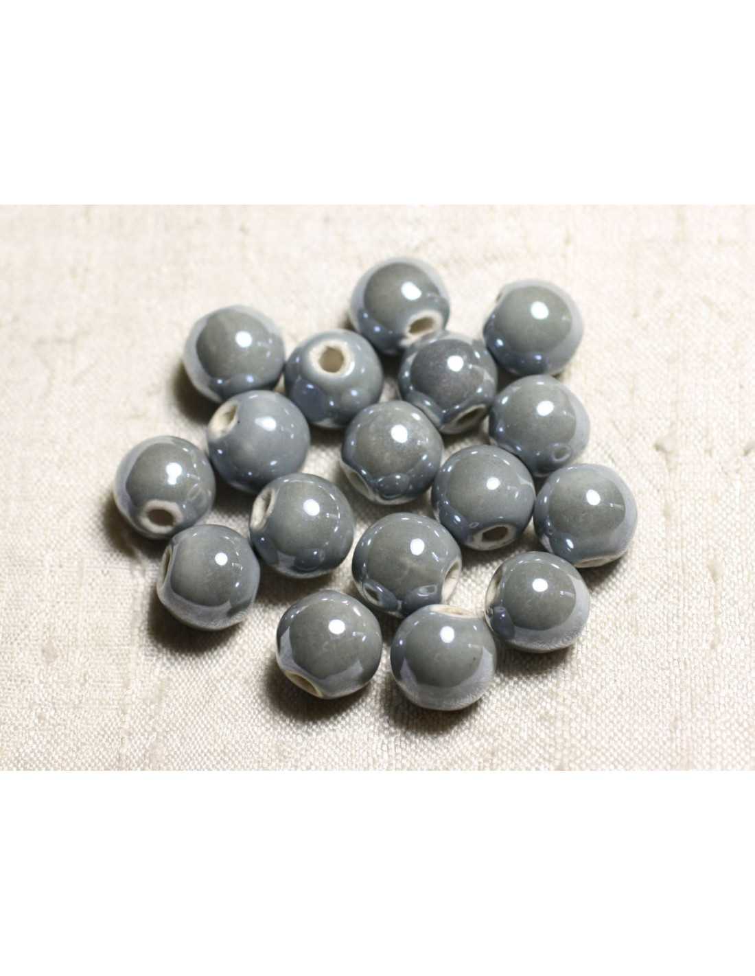 10pc - Perlas de cerámica de porcelana 12mm iridiscente gris perla - 4558550088789