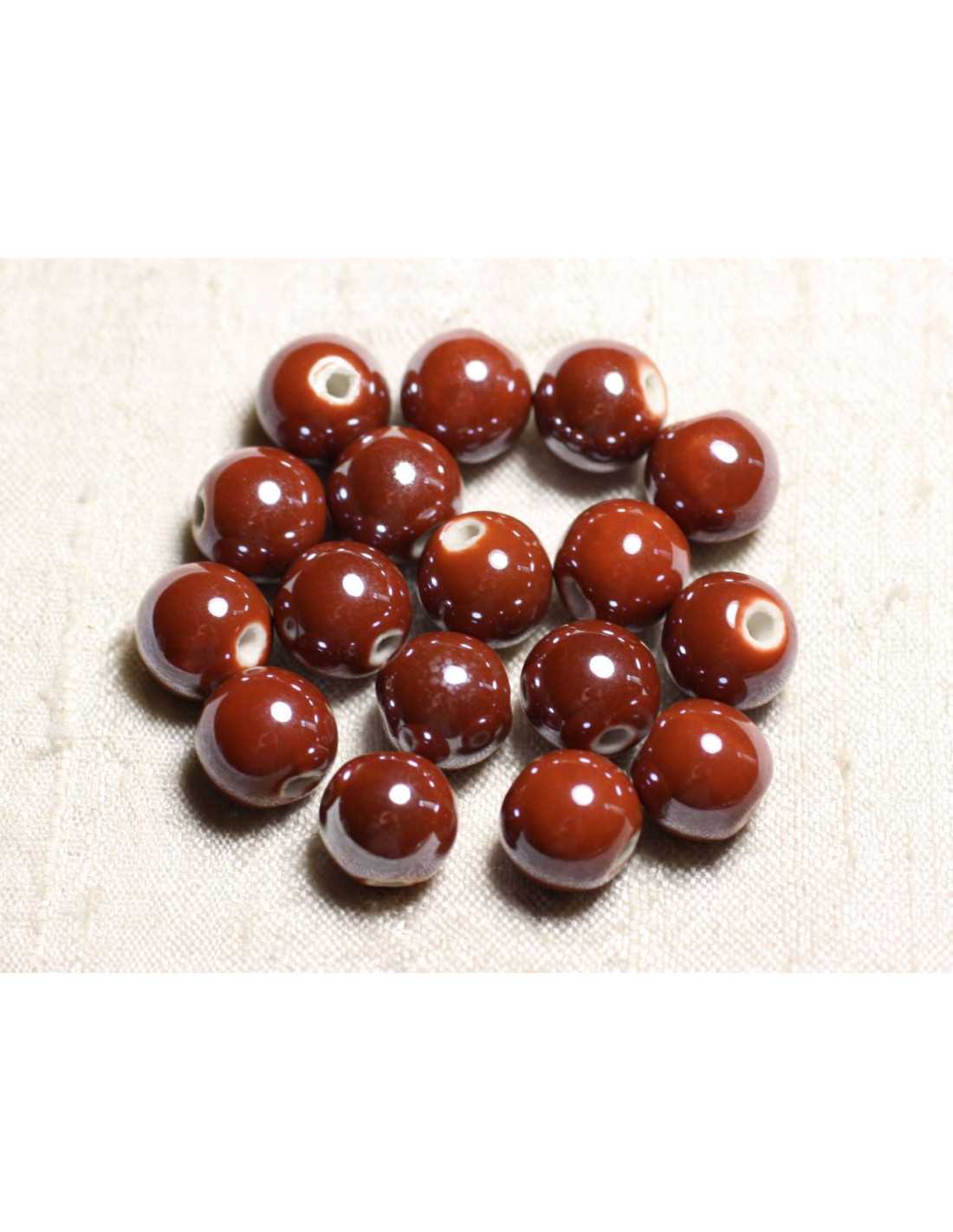 10pc - Perlas de cerámica de porcelana Bolas de ladrillo iridiscente marrón de 12 mm - 4558550088826