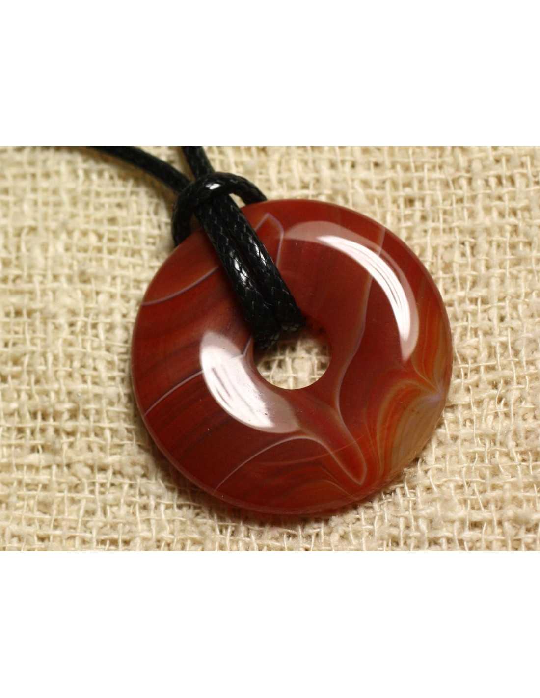 Collar con colgante de piedra - Donut naranja de ágata roja 30 mm