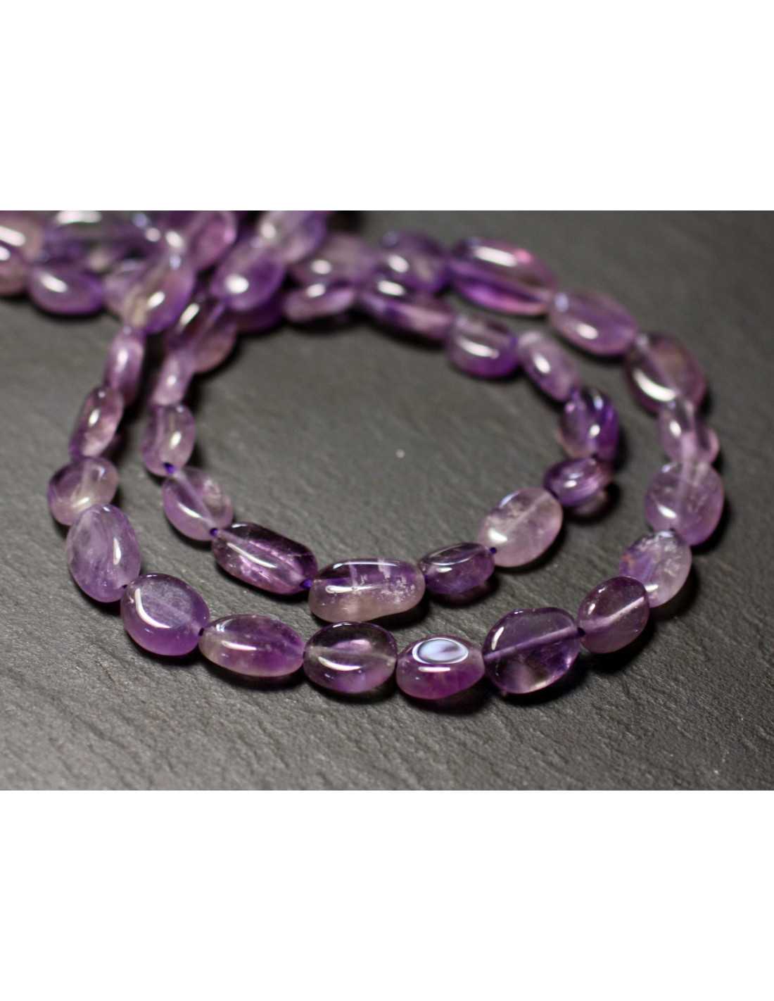 Fil 34cm 39pc env - Perles Pierre - Amethyste Olives Ovales 7-10mm