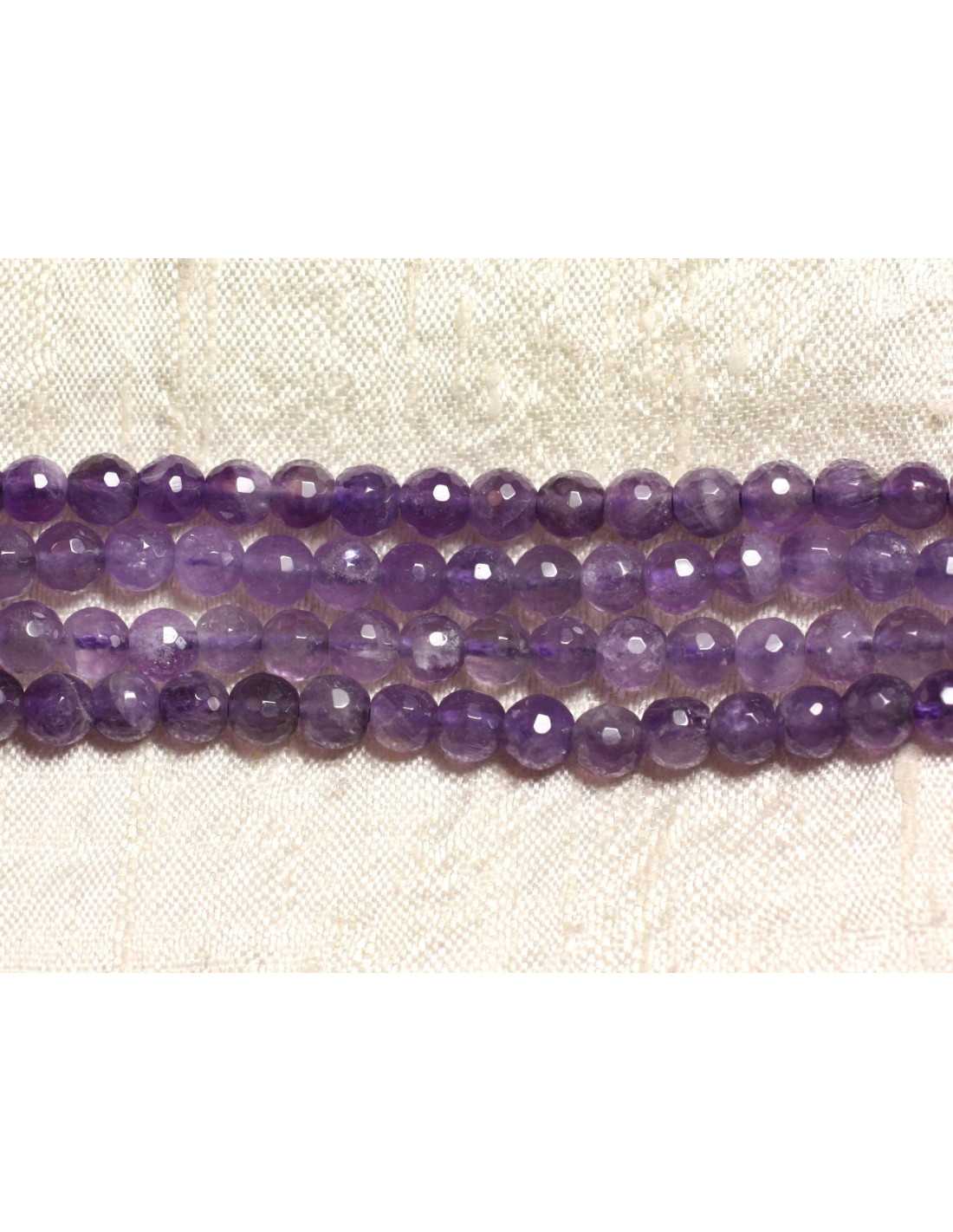 Fil 39cm 61pc environ - Perles Pierre Améthyste Boules Facettées 6mm Violet Mauve
