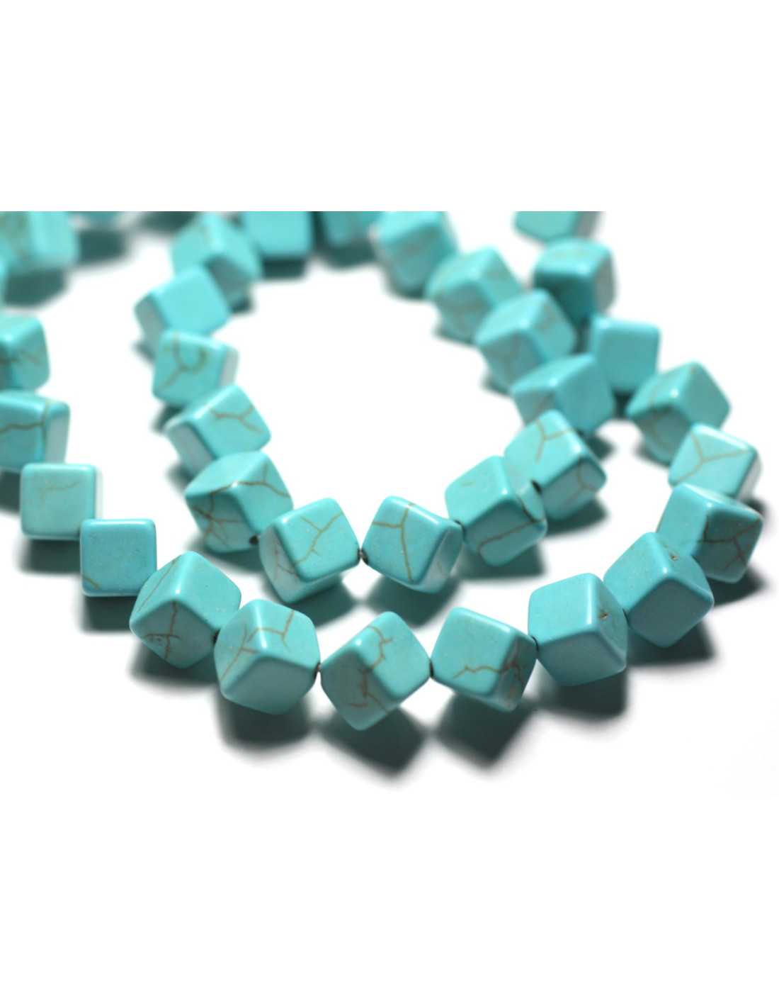Fil 39cm 34pc env - Perles Turquoise synthèse Cubes Pointes 8x8mm Bleu Turquoise