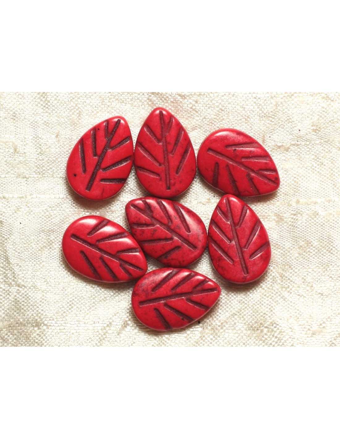Fil 39cm 18pc environ - Perles Pierre Turquoise synthèse Feuilles 20mm Rouge