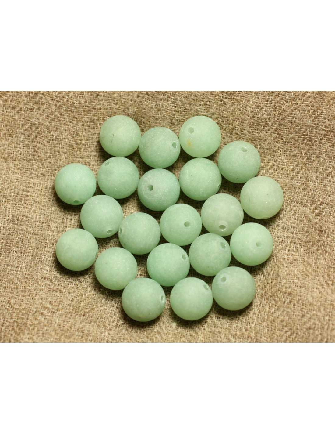 Fil 39cm 37pc environ - Perles Pierre Aventurine Verte Boules 10mm Mat sablé givré