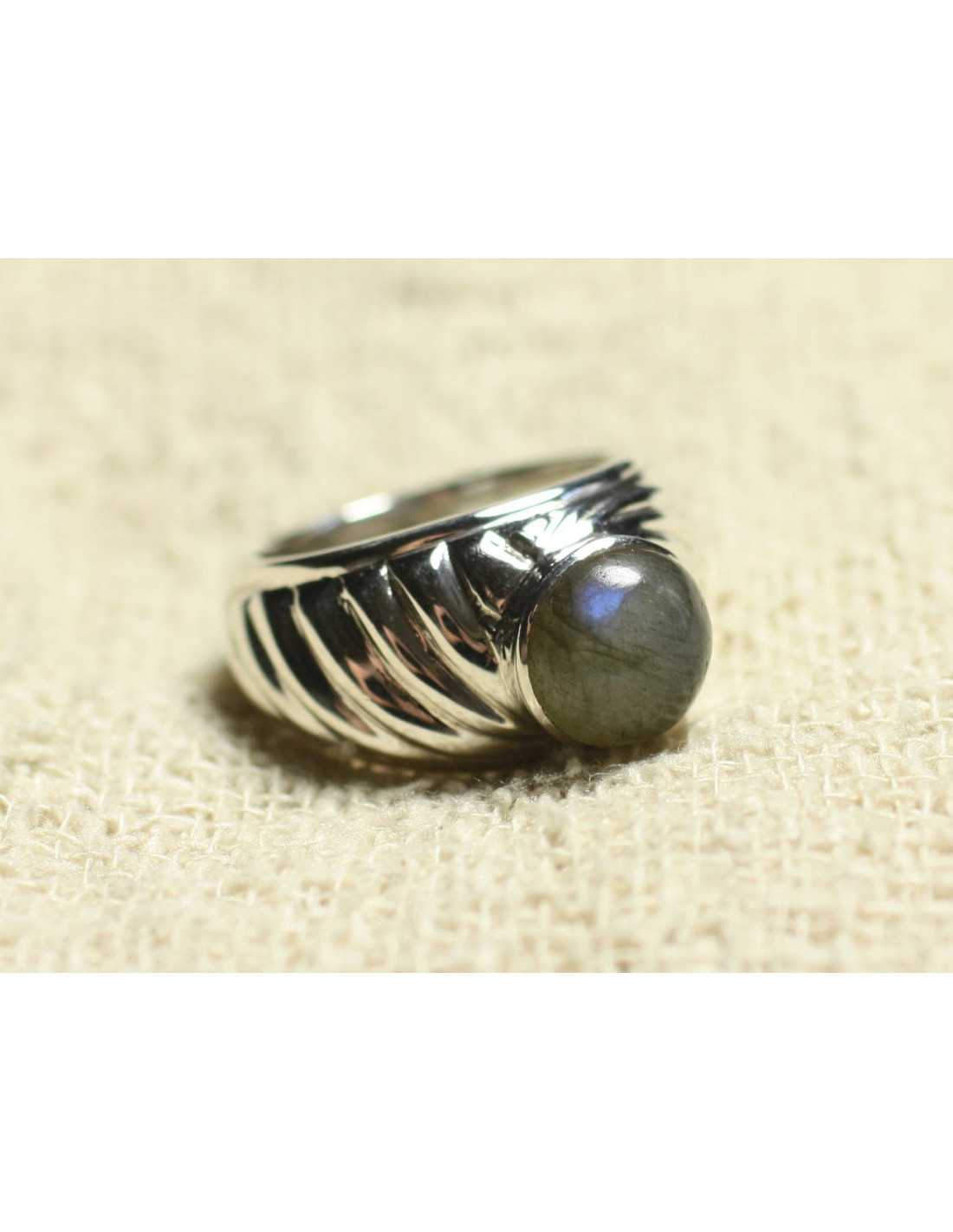N121 - Bague Argent 925 et Pierre - Labradorite Rond 9mm