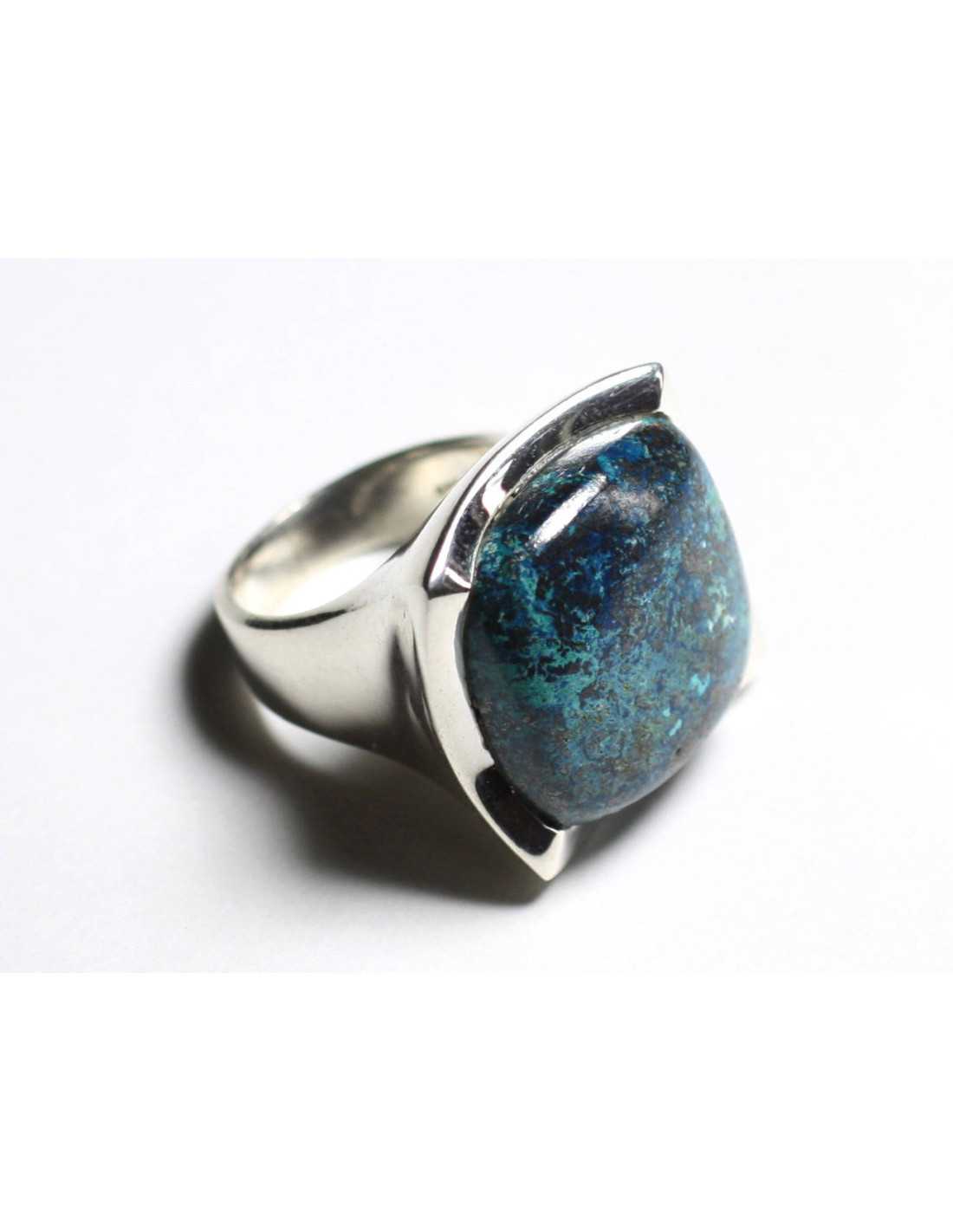 N222 - Bague Argent 925 et Pierre - Azurite Carré 20mm