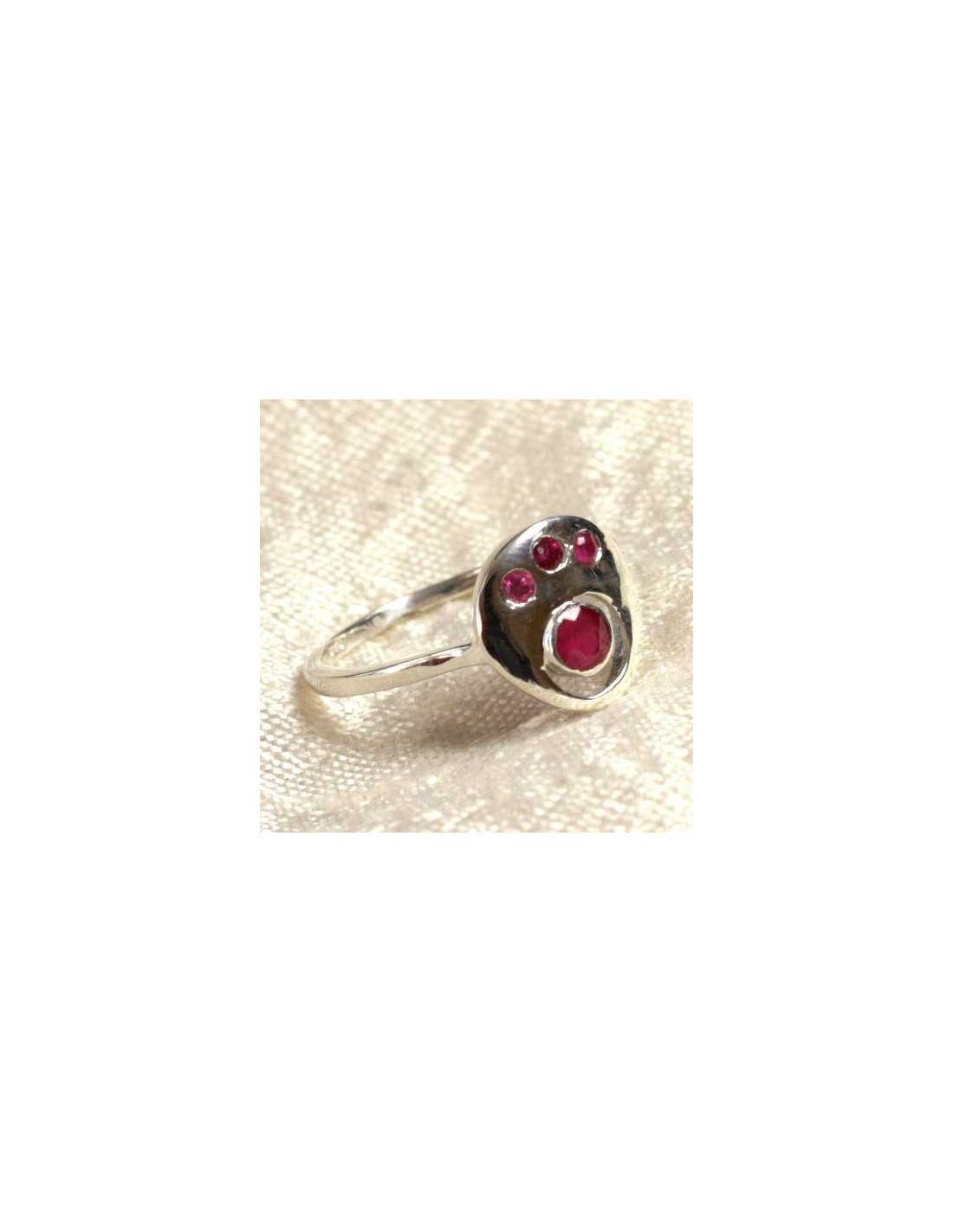 N226 - Bague Argent 925 et Pierre - Rubis Facetté Ronds 2-4mm