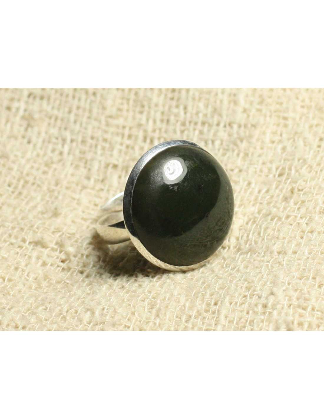 Bague Argent 925 et Pierre - Jade Canada Nephrite Rond 20mm Taille Réglable