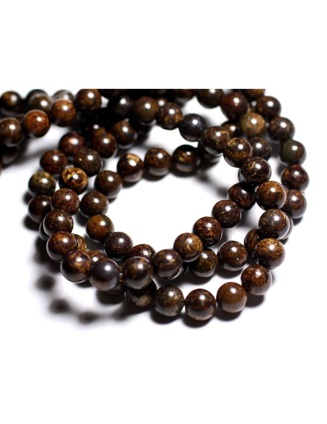 Fil 39cm 46pc env - Perles de Pierre - Bronzite Boules 8mm