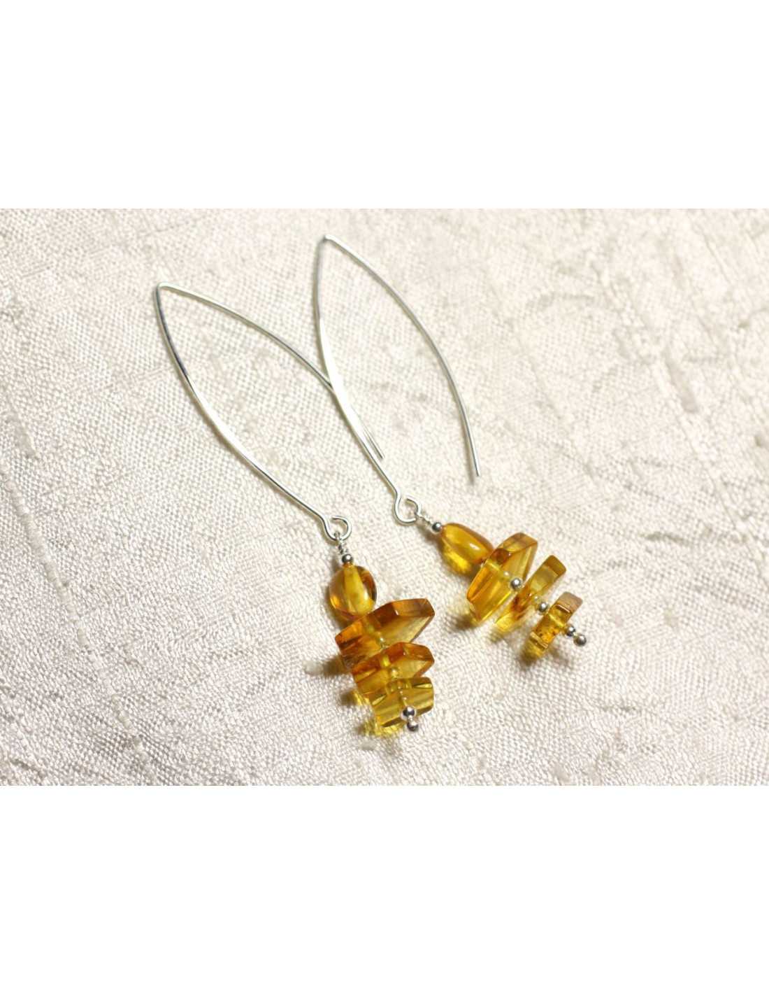 Boucles d'oreilles argent 925 Longs crochets et Ambre