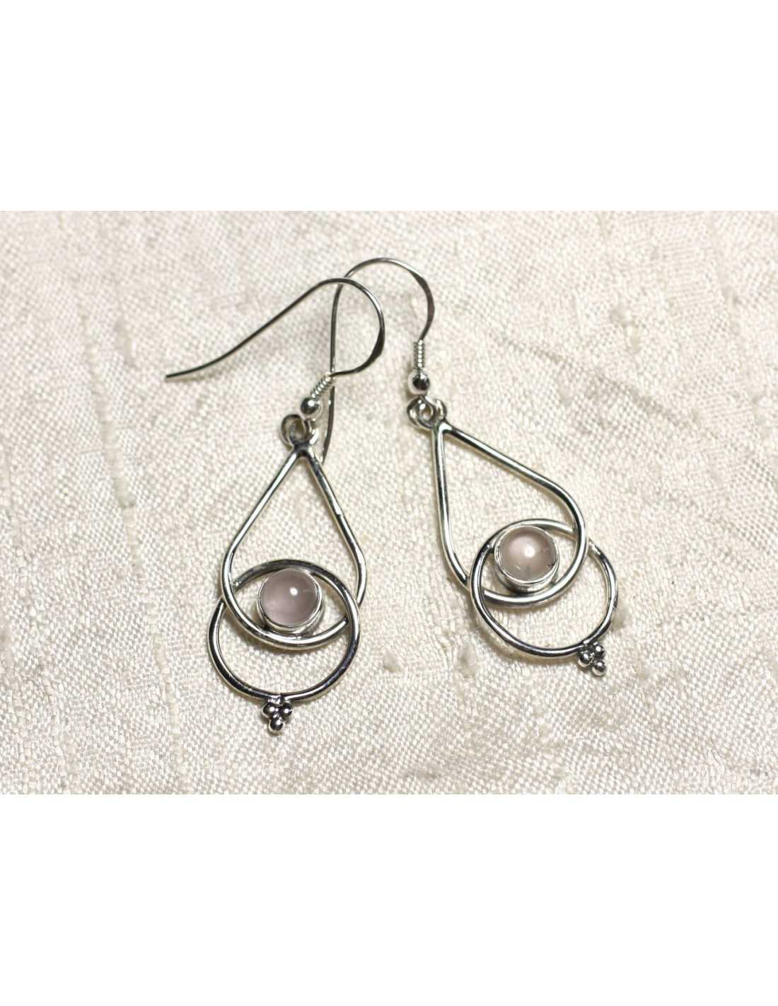 BO205 - Boucles d'Oreilles Argent 925 et Pierre Quartz Rose Gouttes 36mm