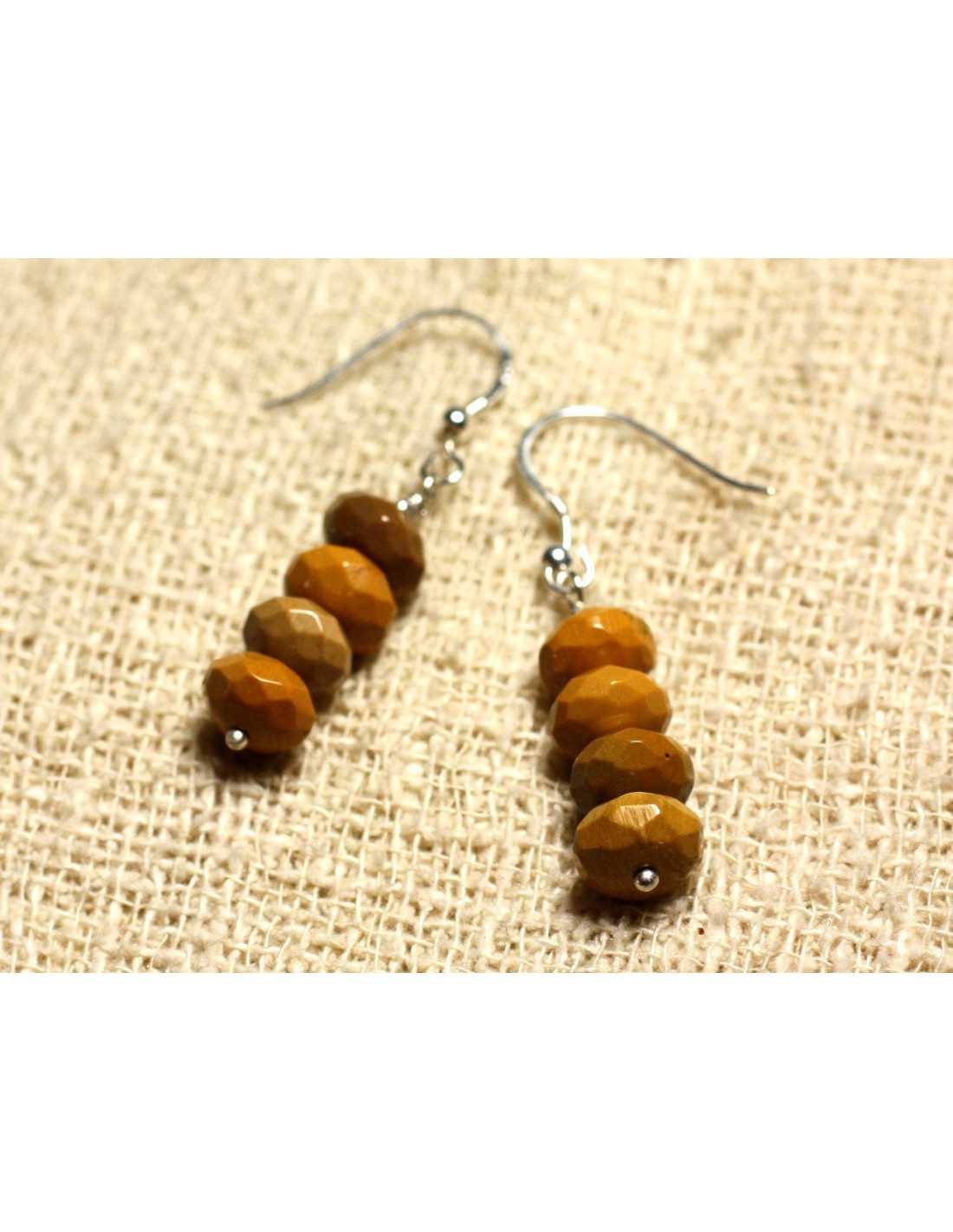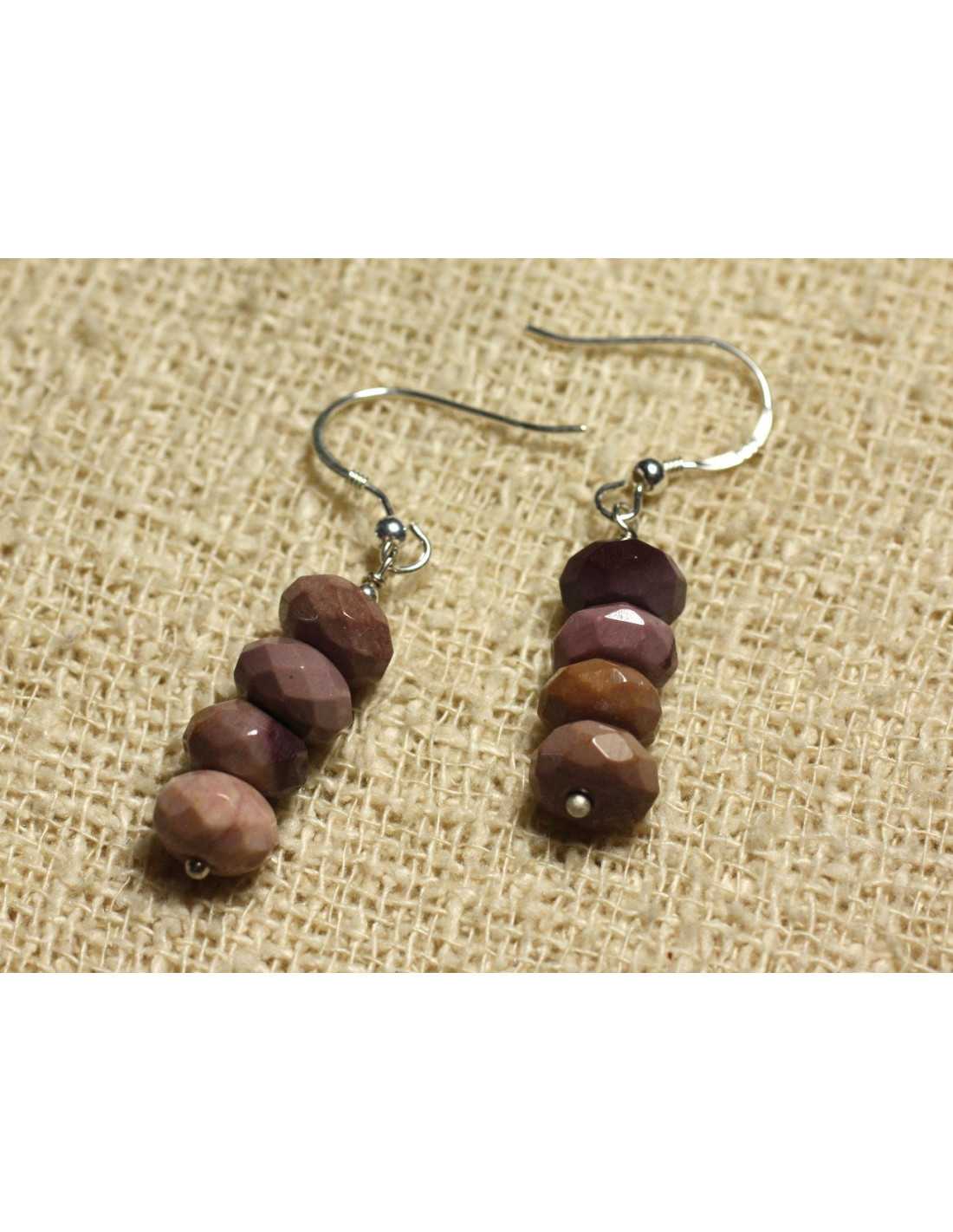 Boucles d'Oreilles Argent 925 - Jaspe Mokaïte Rondelles Facettées 8x5mm