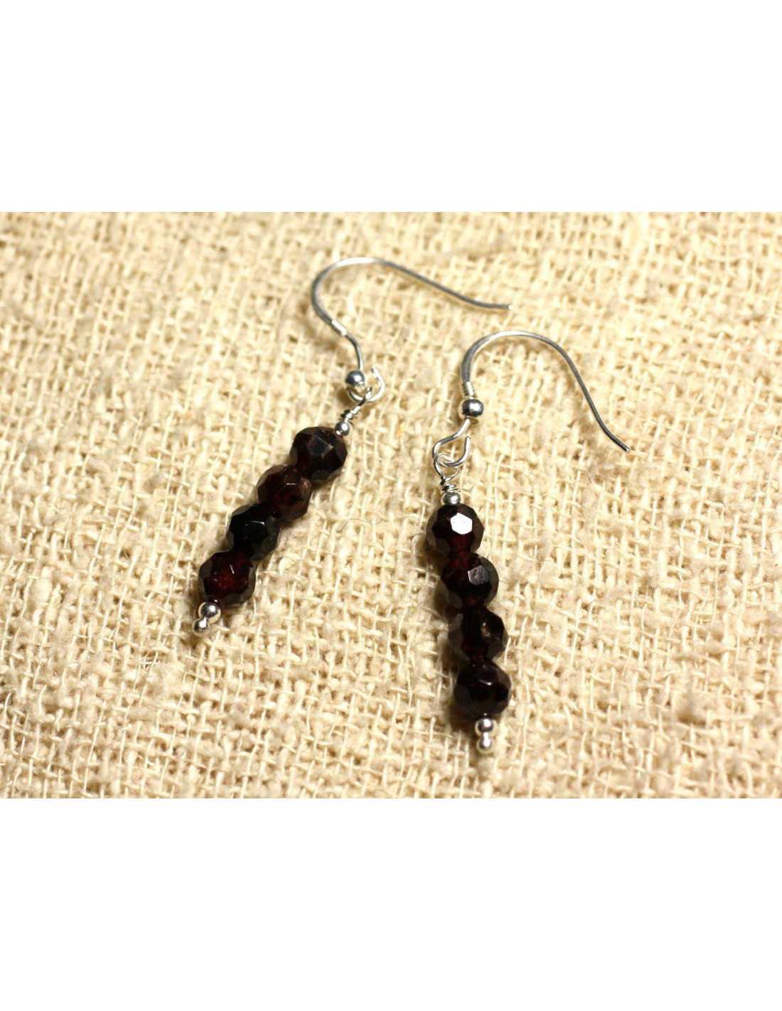 Boucles oreilles Argent 925 Pierre Grenat Facetté Boules 6mm rouge bordeaux noir