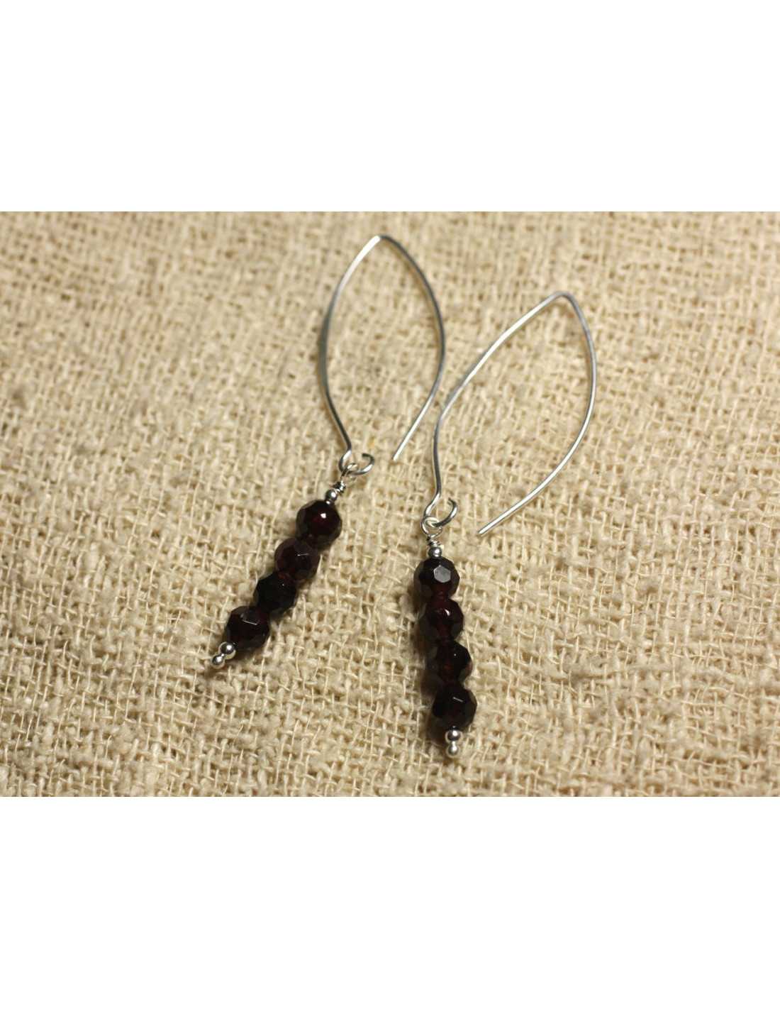 Boucles oreilles Argent 925 Crochets 40mm Pierre Grenat Facetté Boules 6mm rouge bordeaux noir
