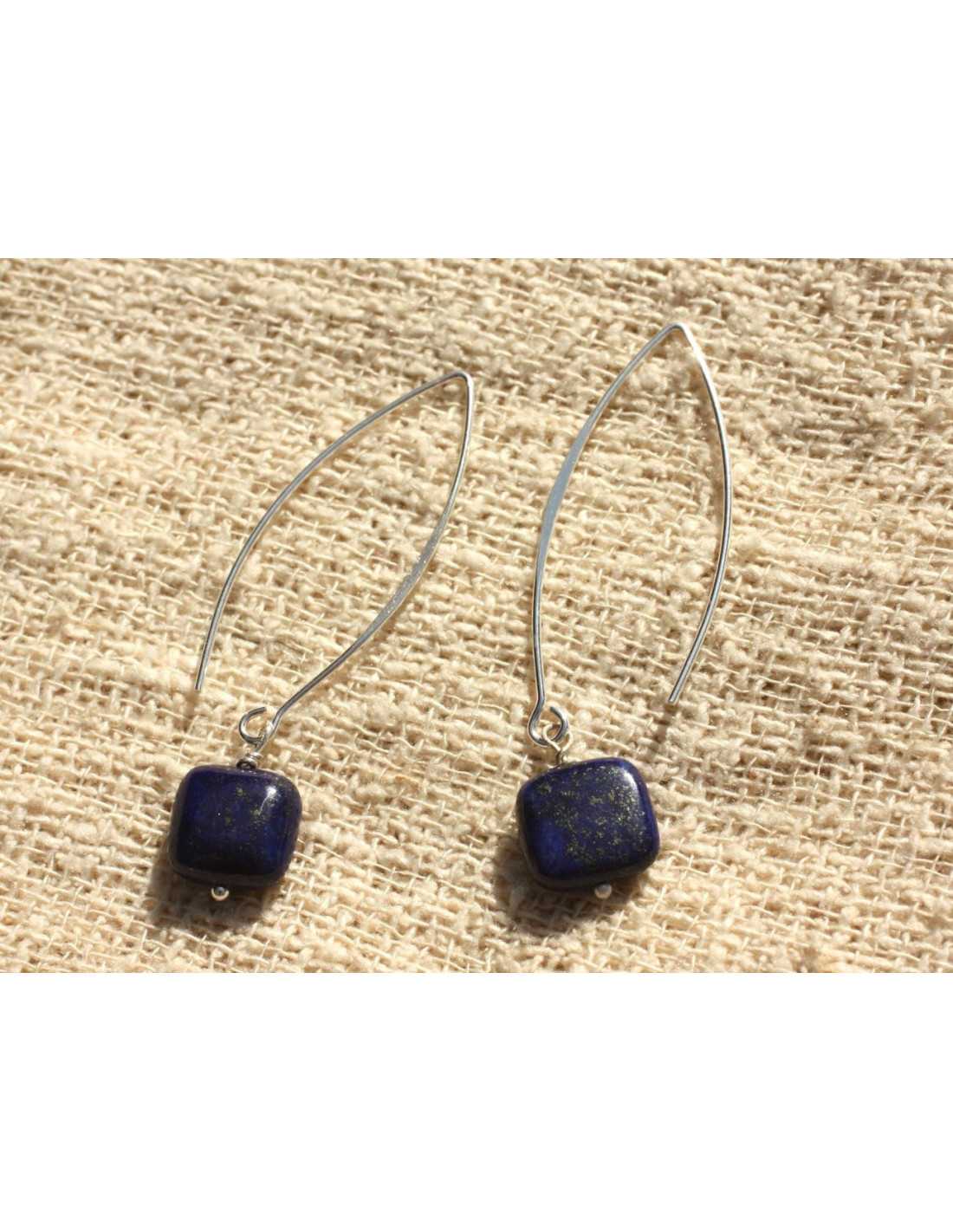 Boucles d'Oreilles Argent 925 - Lapis Lazuli Carrés 10mm