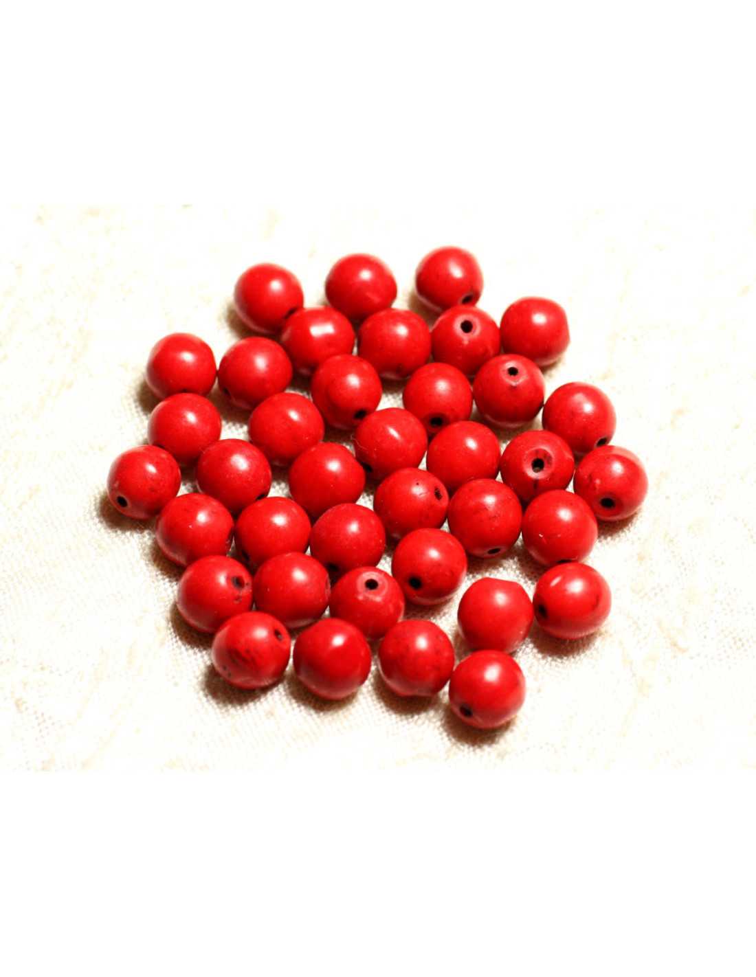 Fil 39cm 48pc env - Perles de Pierre Turquoise Synthèse Reconstituée Boules 8mm Rouge