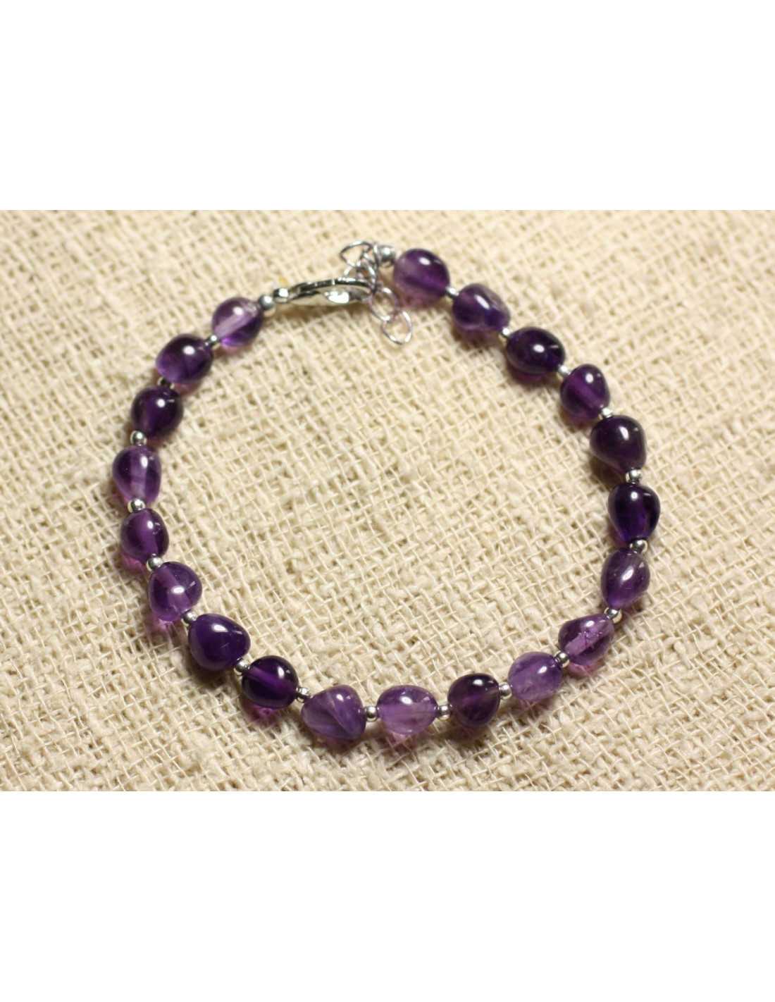 Bracelet Argent 925 et Pierre - Améthyste Nuggets 6-7mm