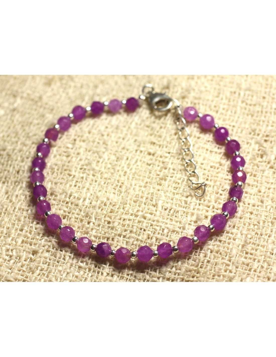 Bracelet Argent 925 et Pierre - Jade Violet Rose Fuchsia Facettée 4mm