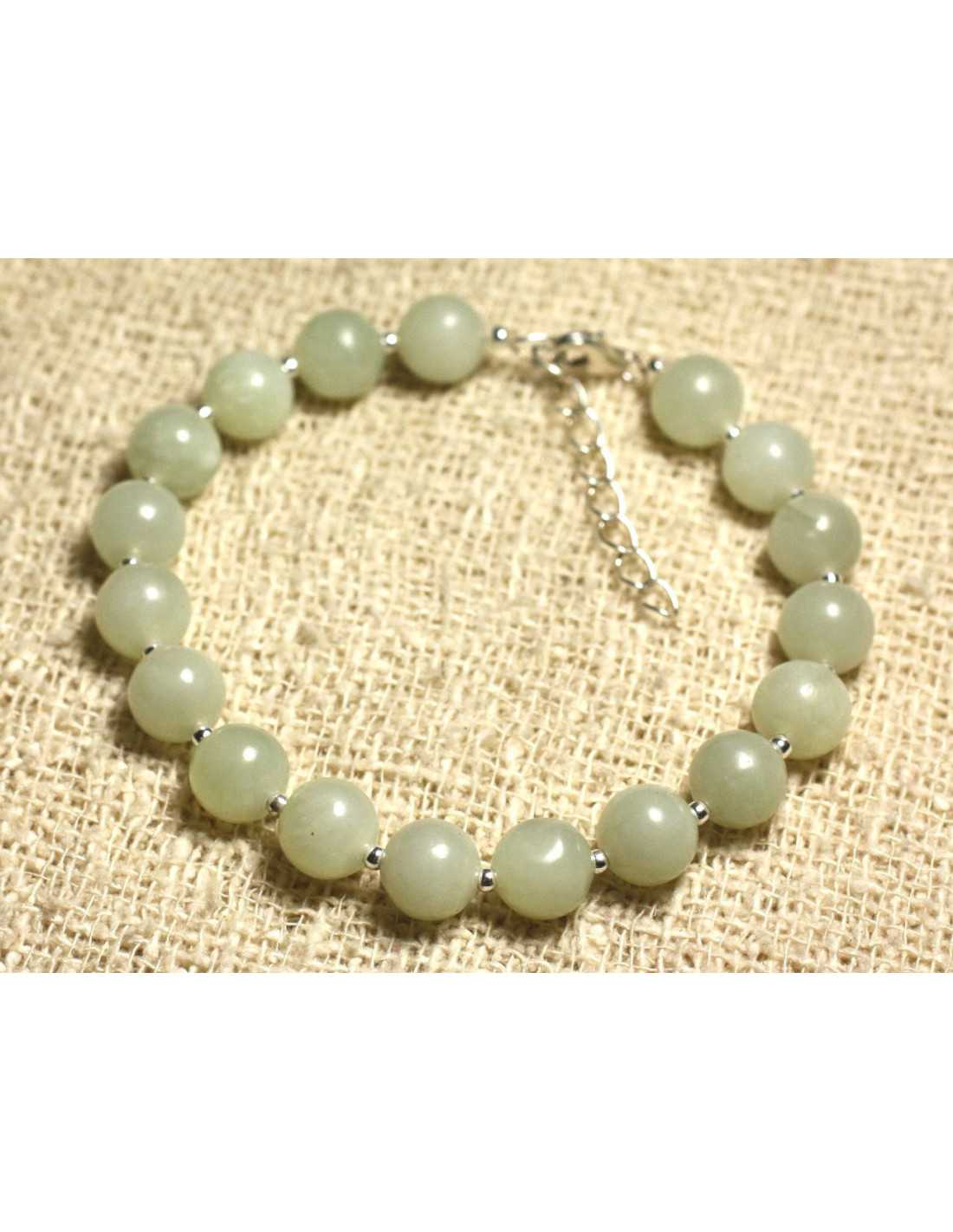 Bracelet Argent 925 et Pierre semi précieuse - Jade verte 8mm